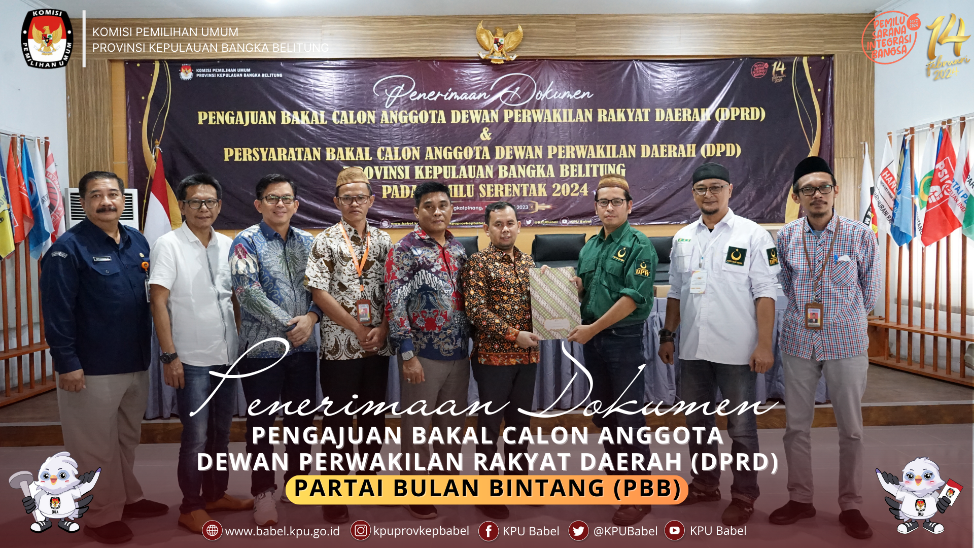 #SeperadikPemilih, KPU Babel menerima kehadiran Partai Bulan Bintang (PBB) dalam rangka Pengajuan Bakal Calon Anggota Dewan Perwakilan Rakyat (DPRD) Provinsi Kepulauan Bangka Belitung dalam Pemilu Tahun 2024 di Ruang Rapat Sekretariat KPU Babel, Sabtu (13/05).