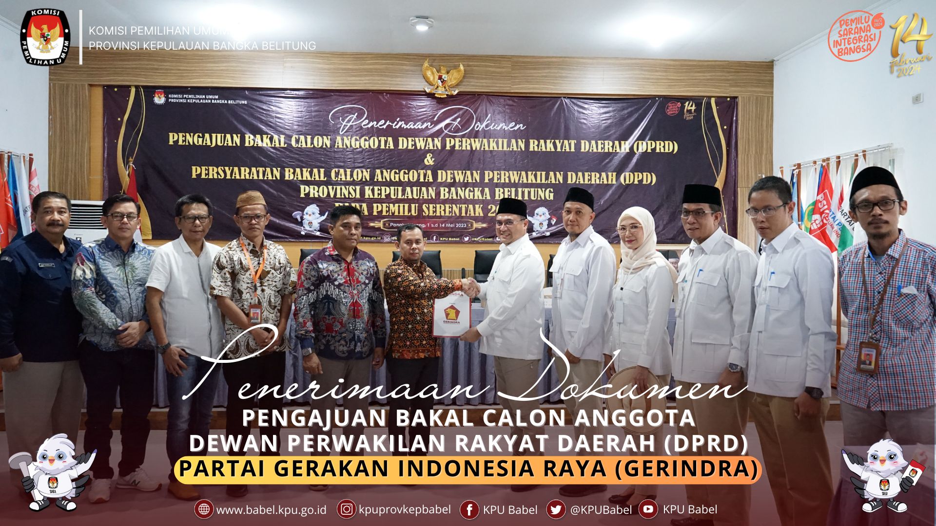 #SeperadikPemilih, KPU Babel menerima kehadiran Partai Gerakan Indonesia Raya (Gerindra) dalam rangka Pengajuan Bakal Calon Anggota Dewan Perwakilan Rakyat (DPRD) Provinsi Kepulauan Bangka Belitung dalam Pemilu Tahun 2024 di Ruang Rapat Sekretariat KPU Babel, Sabtu (13/05).