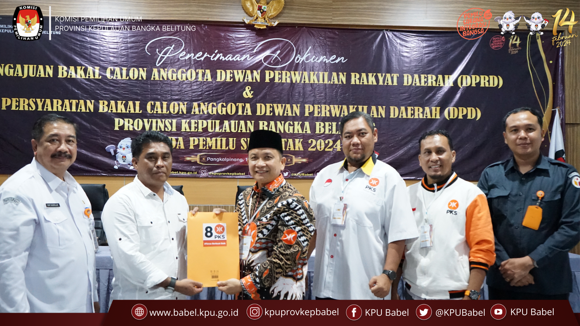 #SeperadikPemilih, KPU Babel menerima kehadiran Partai Keadilan Sejahtera dalam rangka Pengajuan Bakal Calon Anggota Dewan Perwakilan Rakyat (DPRD) Provinsi Kepulauan Bangka Belitung dalam Pemilu Tahun 2024 di Ruang Rapat Sekretariat KPU Babel, Senin (08/05).