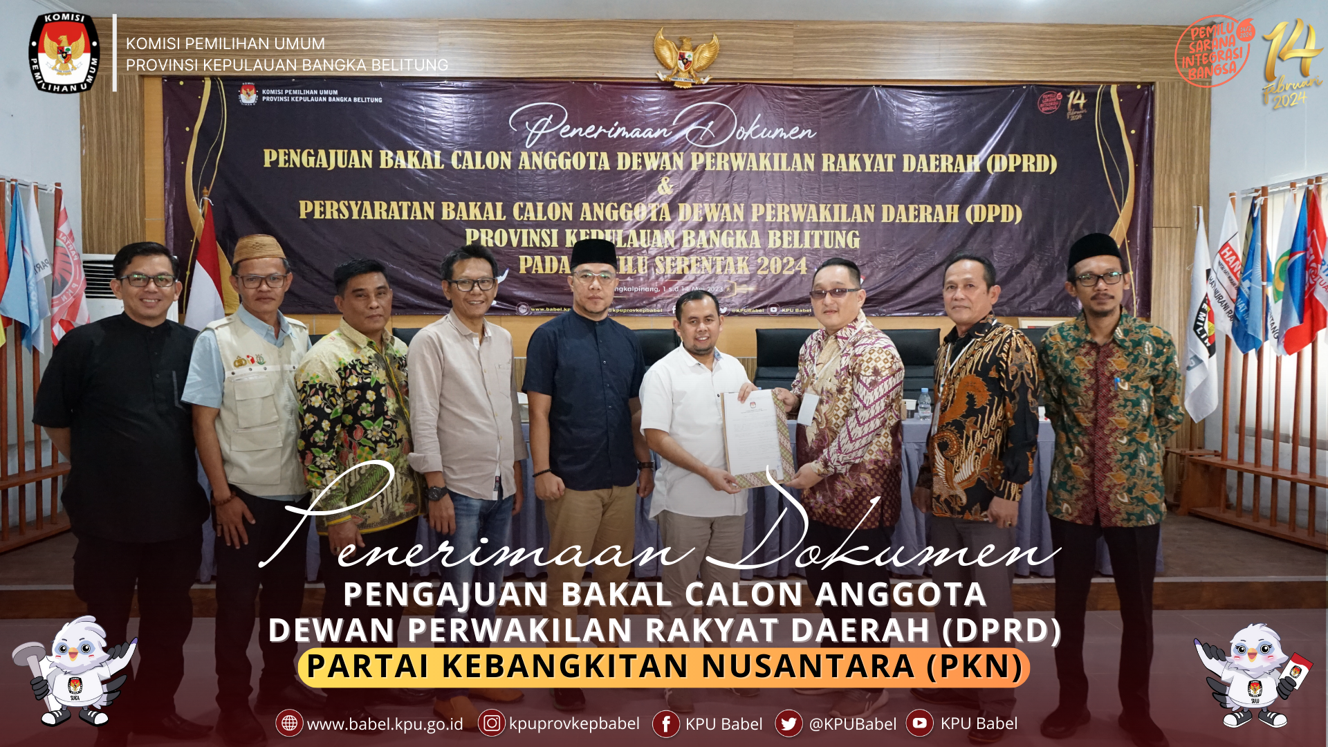 #SeperadikPemilih, KPU Babel menerima kehadiran Partai Kebangkitan Nusantara (PKN) dalam rangka Pengajuan Bakal Calon Anggota Dewan Perwakilan Rakyat (DPRD) Provinsi Kepulauan Bangka Belitung dalam Pemilu Tahun 2024 di Ruang Rapat Sekretariat KPU Babel, Minggu (14/05).
