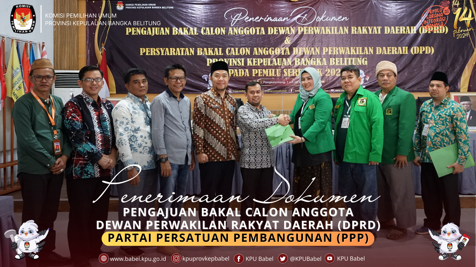 #SeperadikPemilih, KPU Babel menerima kehadiran Partai Persatuan Pembangunan (PPP) dalam rangka Pengajuan Bakal Calon Anggota Dewan Perwakilan Rakyat (DPRD) Provinsi Kepulauan Bangka Belitung dalam Pemilu Tahun 2024 di Ruang Rapat Sekretariat KPU Babel, Jumat (12/05).