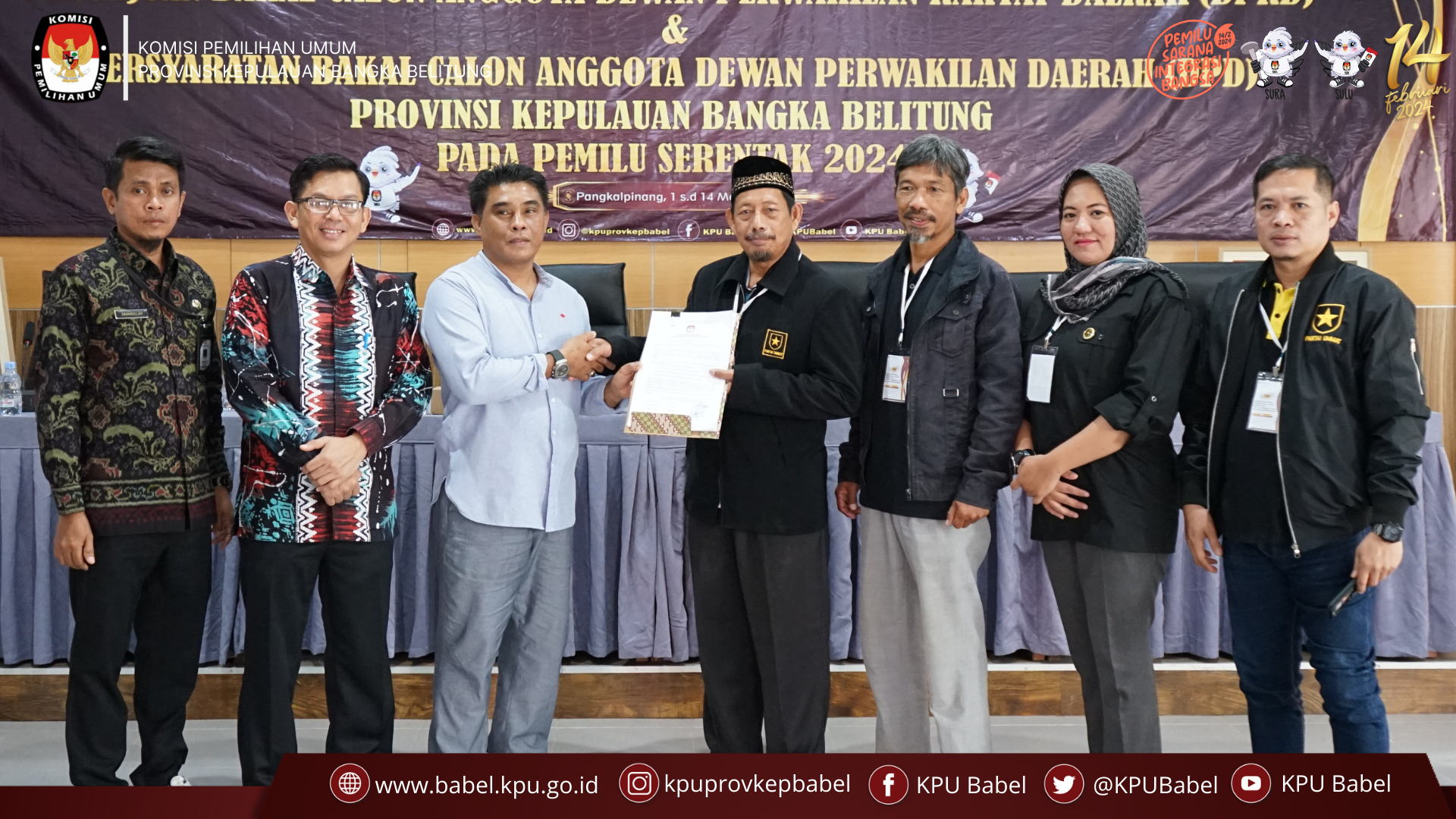 #SeperadikPemilih, KPU Babel menerima kehadiran Partai Ummat dalam rangka Pengajuan Bakal Calon Anggota Dewan Perwakilan Rakyat (DPRD) Provinsi Kepulauan Bangka Belitung dalam Pemilu Tahun 2024 di Ruang Rapat Sekretariat KPU Babel, Jumat (12/05).