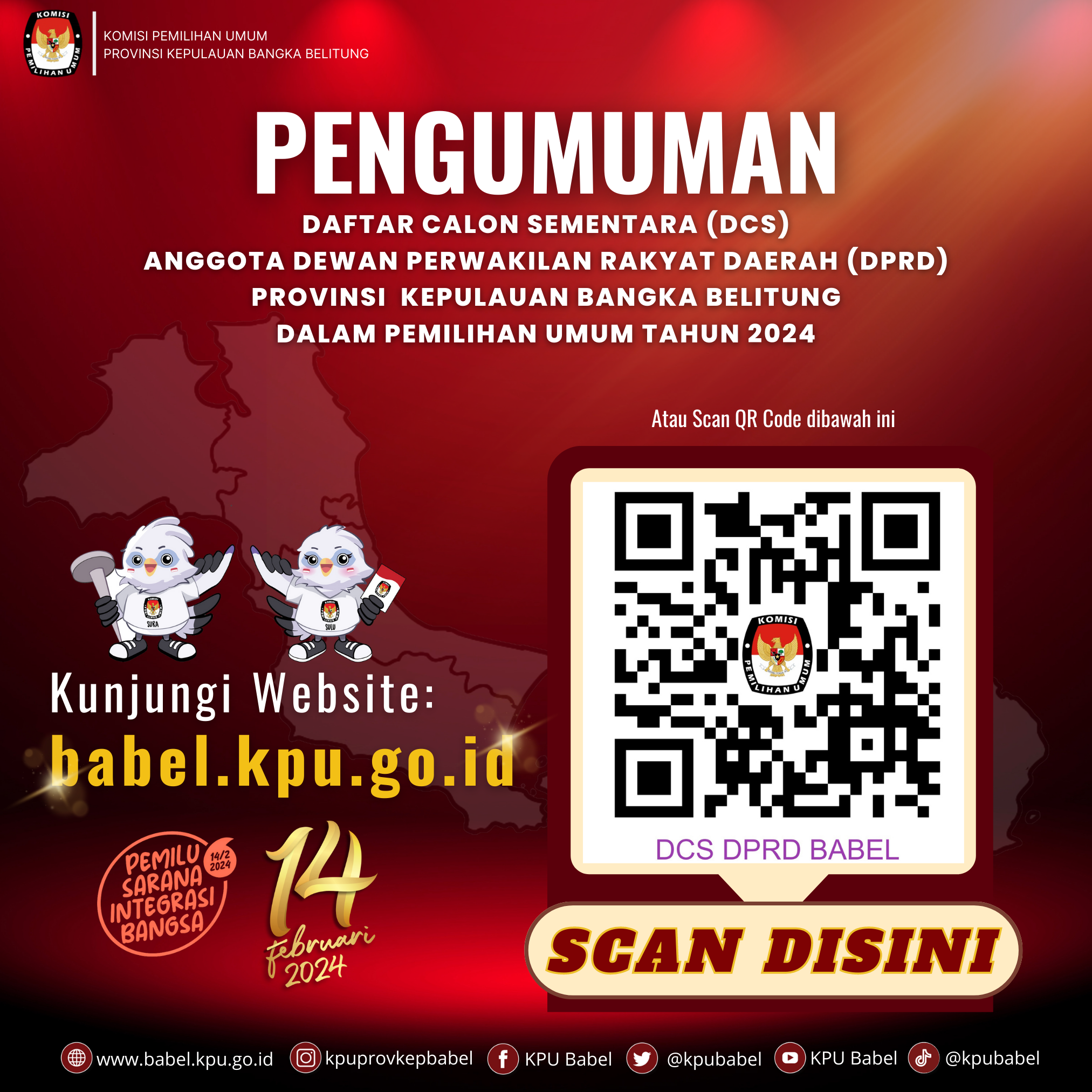 #SeperadikPemilih, Berikut kami sampaikan Pengumuman Daftar Calon Sementara (DCS) Anggota DPRD Provinsi Kepulauan Bangka Belitung dalam Pemilihan Umum Tahun 2024.