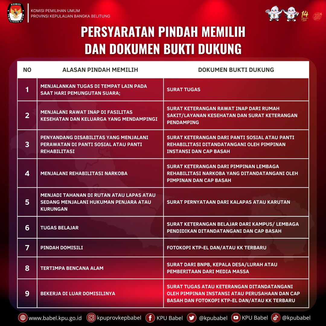 Simak persyaratan pindah memilih dan dokumen bukti dukung berikut ini ya...