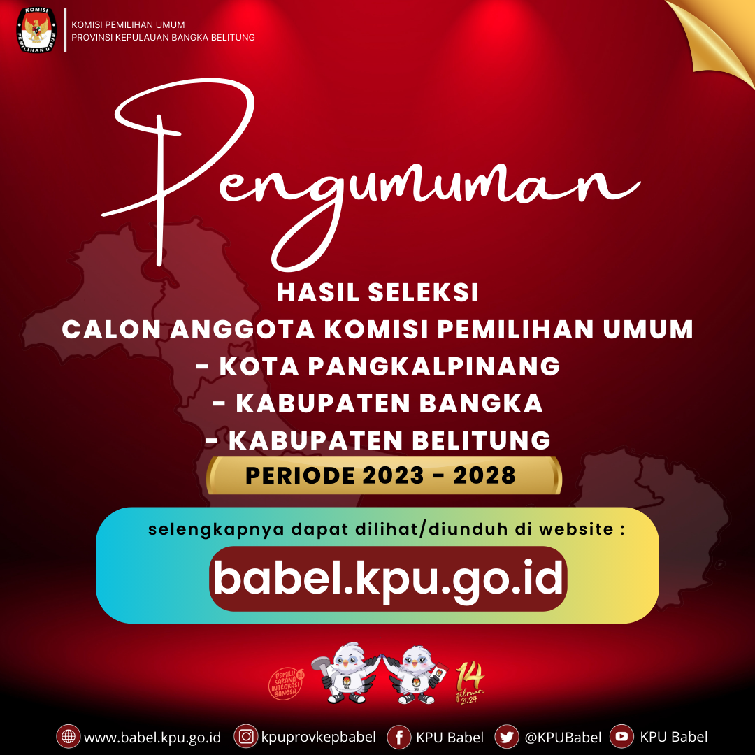 PENGUMUMAN HASIL SELEKSI CALON ANGGOTA KPU KAB. BANGKA, KOTA PANGKALPINANG DAN KAB. BELITUNG PERIODE 2023-2028