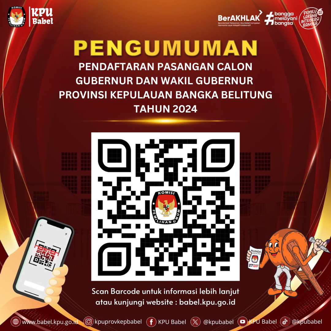 #SeperadikPemilih berikut pengumuman pendaftaran Pasangan Calon Gubernur dan Wakil Gubernur Provinsi Kepulauan Bangka Belitung Tahun 2024.