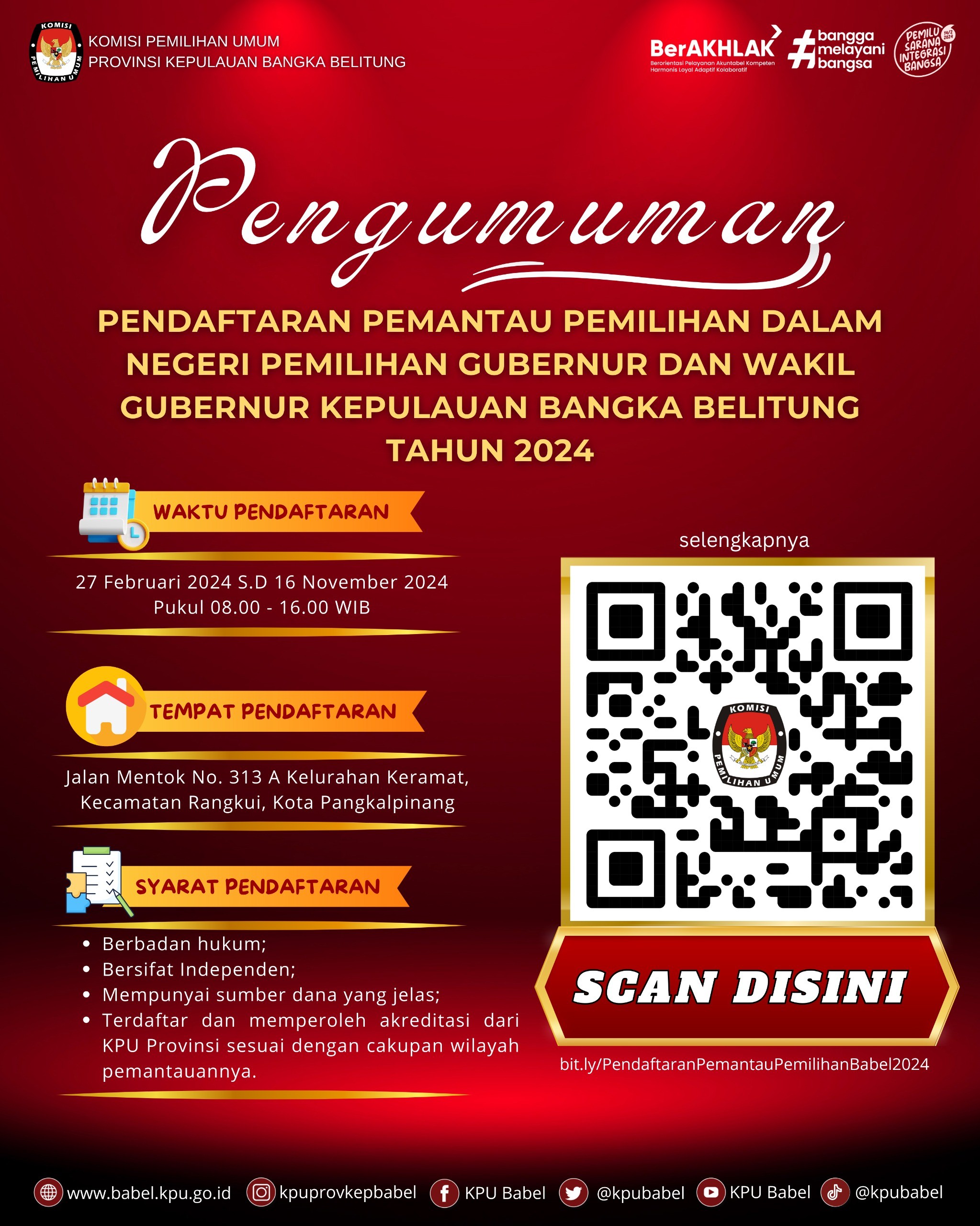 PENGUMUMAN PENDAFTARAN PEMANTAU PEMILIHAN GUBERNUR DAN WAKIL GUBERNUR 2024