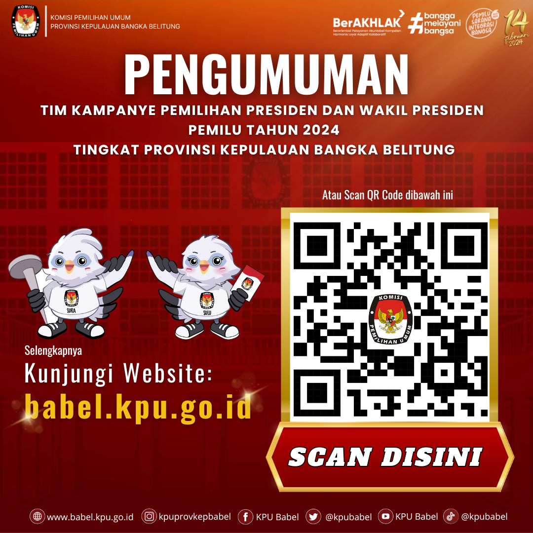 Pengumuman selengkapnya dapat diakses melalui laman website resmi KPU Provinsi Kepulauan Bangka Belitung DISINI atau scan barcode yang telah disediakan.