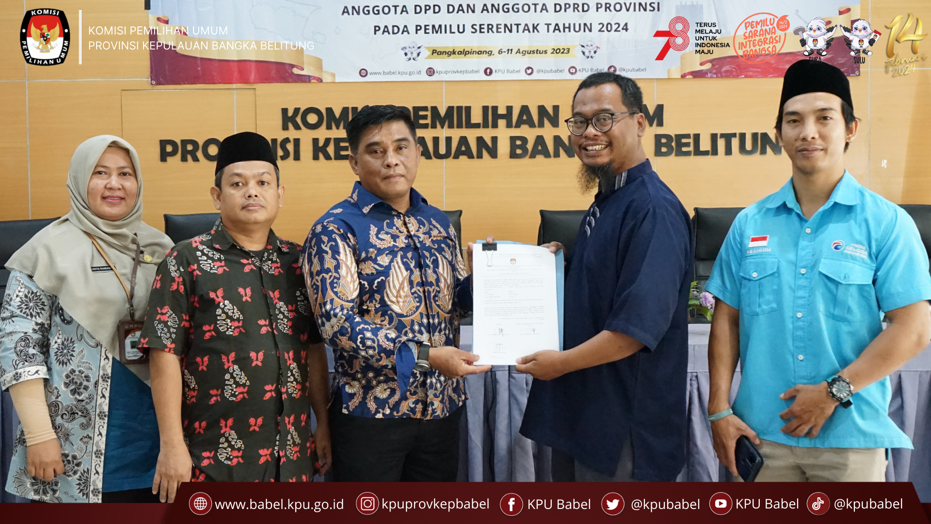 Penyerahan dilakukan oleh LO Partai Politik dan diterima oleh Ketua dan Anggota KPU Provinsi Kepulauan Bangka Belitung.
