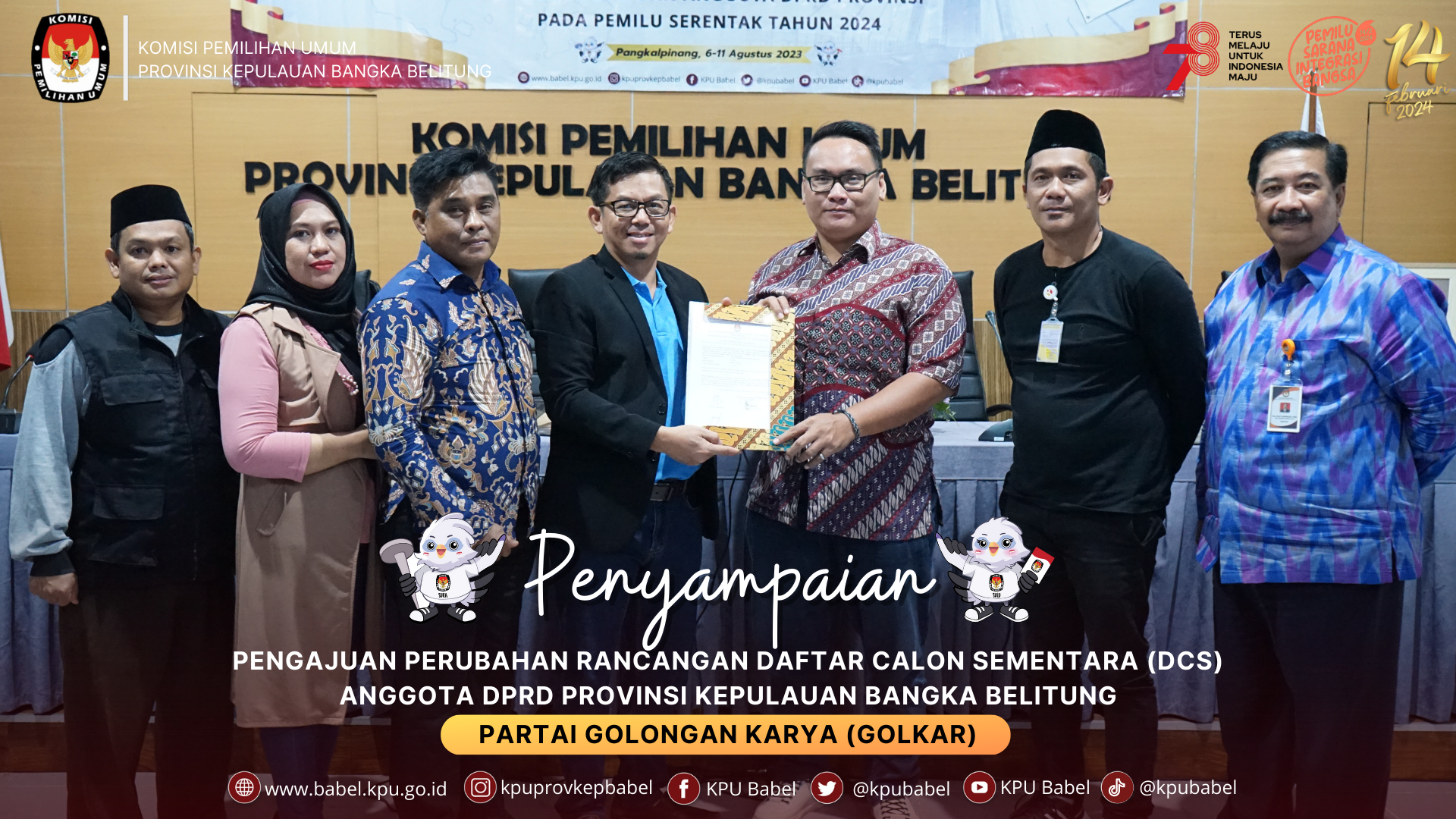 Penyerahan dilakukan oleh LO Partai Politik dan diterima oleh Ketua & Anggota KPU Babel.