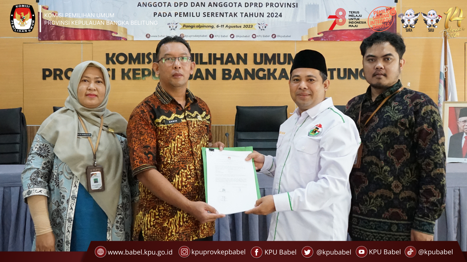 Penyerahan dilakukan oleh LO Partai Politik dan diterima oleh Plh. Sekretaris KPU Provinsi Kepulauan Bangka Belitung serta Kasubbag Teknis.