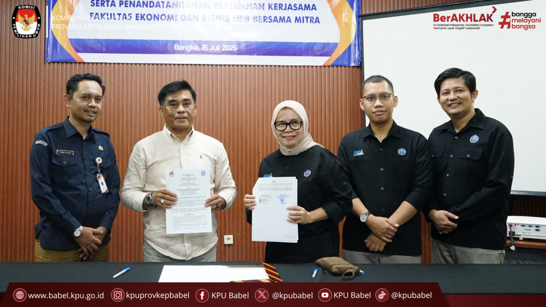 PERKUAT SINERGITAS KPU BABEL LAKUKAN PENANDATANGANAN PERJANJIAN KERJASAMA DENGAN FAKULTAS EKONOMI DAN BISNIS UNIVERSITAS BANGKA BELITUNG