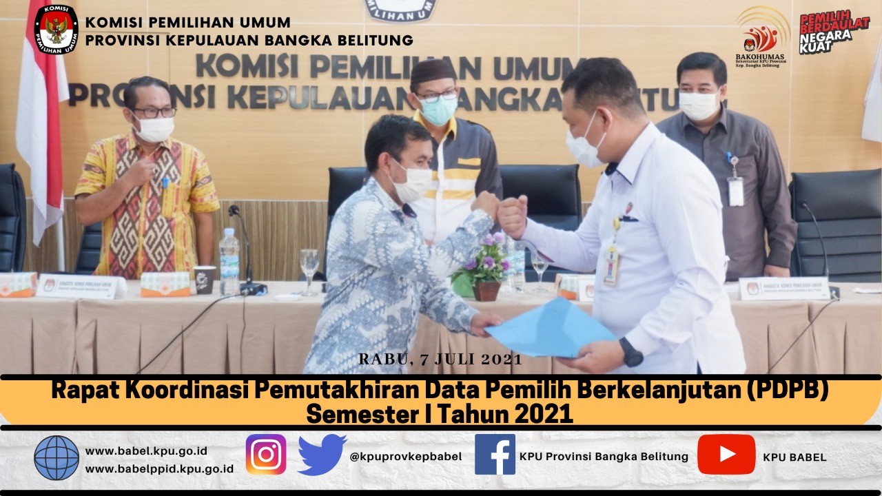 Komisi Pemilihan Umum Provinsi Kepulauan Bangka Belitung melaksanakan Rapat Koordinasi Pemutakhiran Data Pemilih Berkelanjutan (PDPB) Semester I Tahun 2021 bertempat di Ruang Rapat Kantor Sekretariat Komisi Pemilihan Umum Provinsi Kepulauan Bangka Belitung Jalan Mentok No. 313A , Keramat Kecamatan Rangkui Kota Pangkal Pinang.
