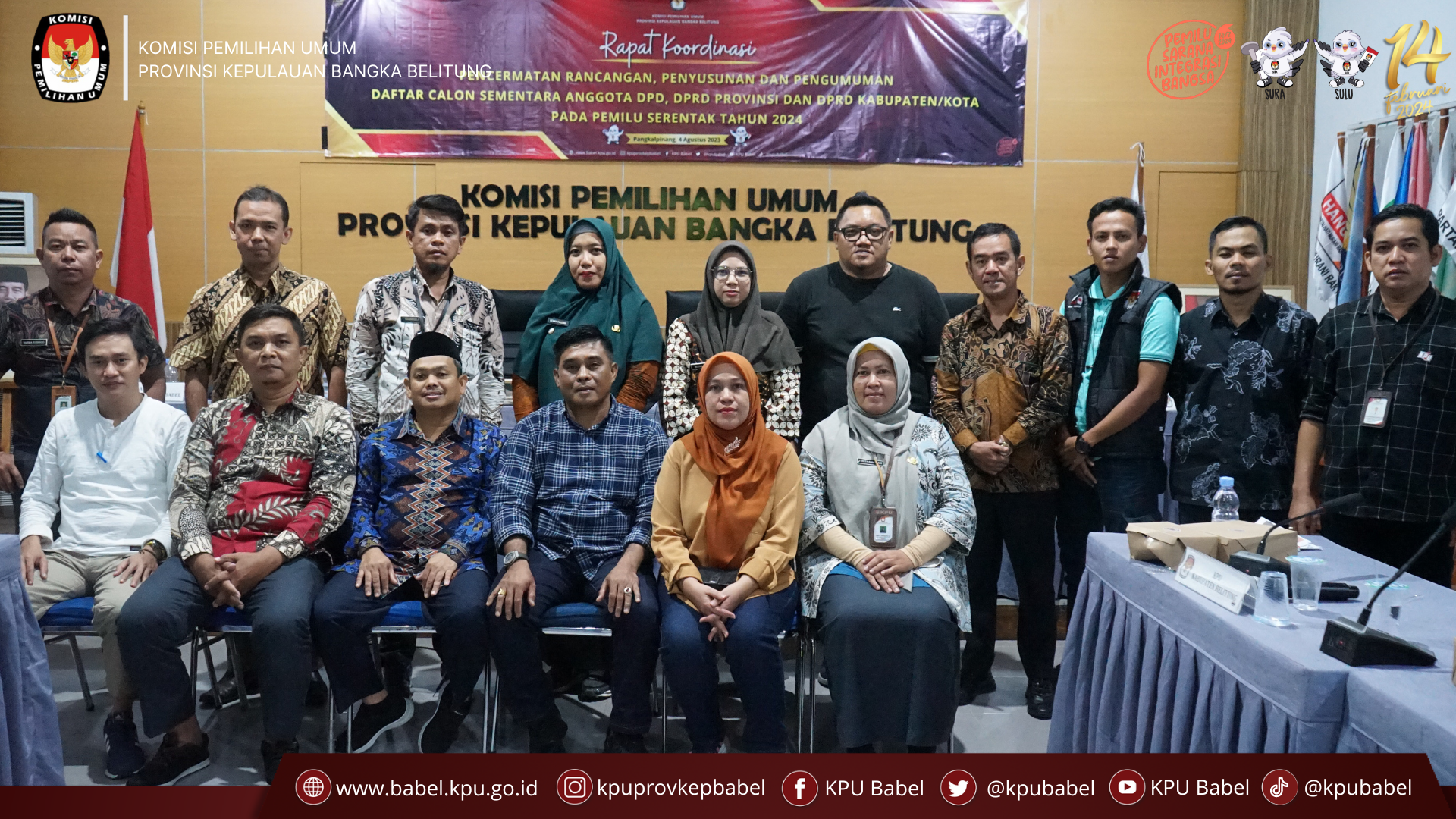 #SeperadikPemilih Komisi Pemilihan Umum (KPU) Provinsi Kepulauan Bangka Belitung melaksanakan Rapat Koordinasi Pencermatan Rancangan, Penyusunan dan Pengumuman Daftar Calon Sementara (DCS) Anggota DPD, DPRD Provinsi Dan DPRD Kabupaten/Kota Pada Pemilu Tahun 2024. Ini berdasarkan Undang-Undang (UU) Nomor 7 Tahun 2017 tentang Pemilu dan Peraturan KPU Nomor 10 tahun 2023 tentang Pencalonan Anggota DPR, DPRD Provinsi dan DPRD Kabupaten/Kota.