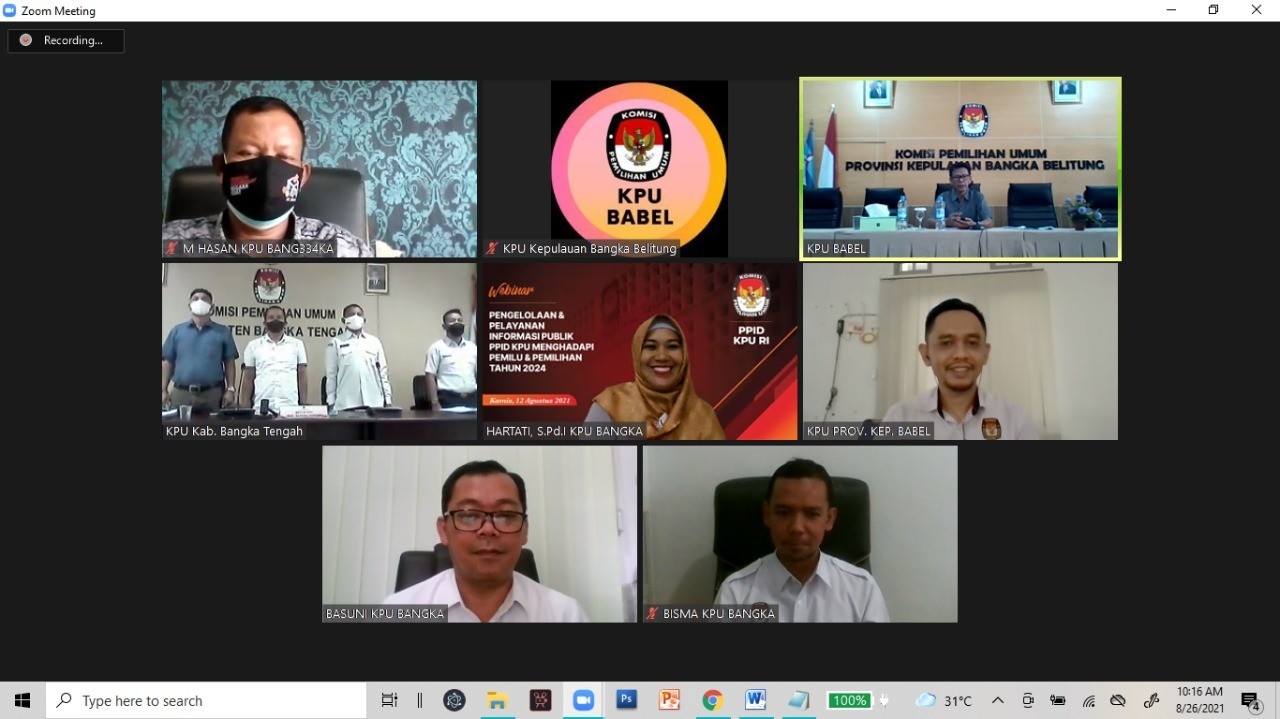 Komisi Pemilihan Umum Provinsi Kepulauan Bangka Belitung mengadakan Rapat Koordinasi Persiapan Pelaksanaan Program Desa Peduli Pemilu dan Pemilihan yang bertempat di Ruang Rapat Sekretariat KPU Provinsi Kepulauan Bangka Belitung. Rapat Koordinasi ini diselenggarakan secara daring dan diikuti oleh dua KPU Kabupaten yaitu KPU Kabupaten Bangka Tengah dan KPU Kabupaten Bangka.