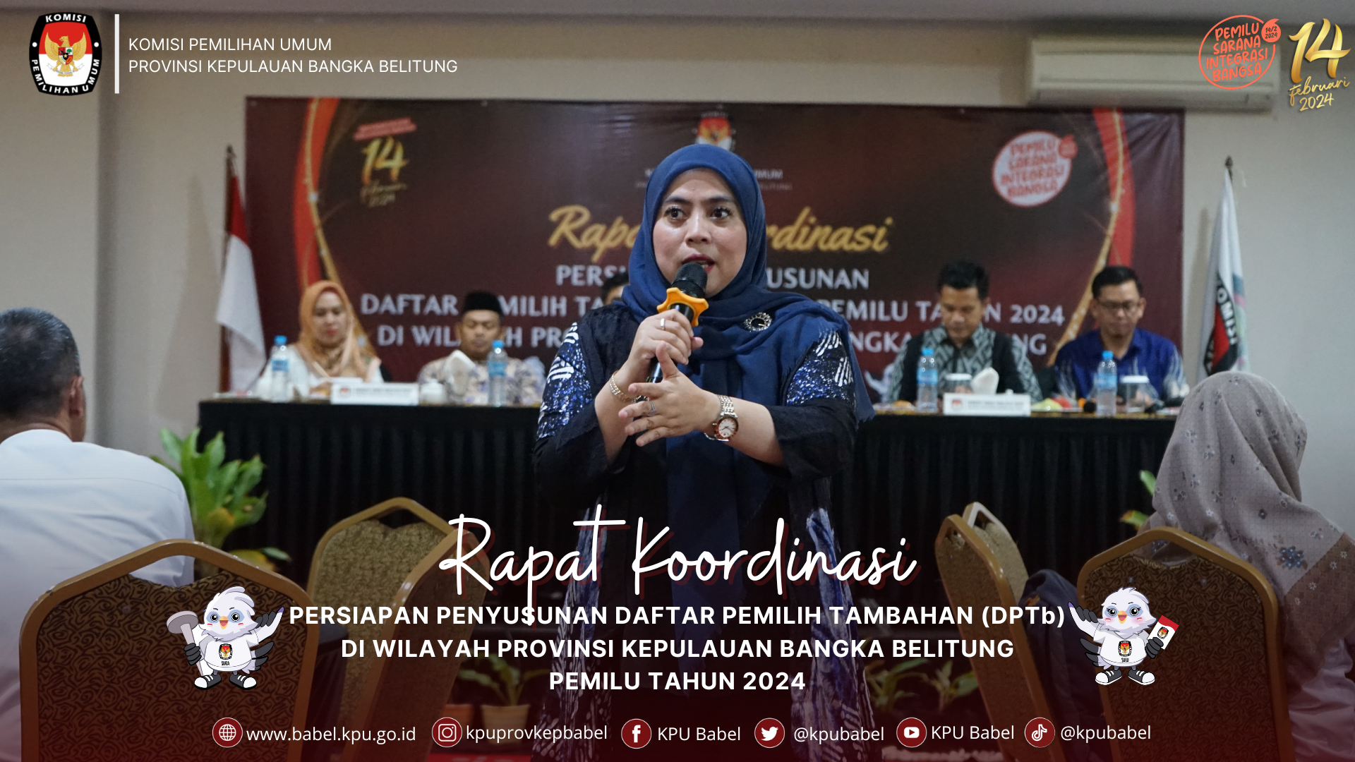 Rapat koordinasi ini dibuka secara resmi oleh Ketua KPU Babel, Husin di Hotel Grand Safran Pangkalpinang sambutannya pada pembukaan rapat koordinasi tersebut, Husin mengutarakan harapannya pada rekan-rekan peserta untuk memaksimal data DPTb"Untuk itu, saya berharap kita bersama-sama memaksimalkan data di Daftar Pemilih Tambahan (DPTb), ujar husin"