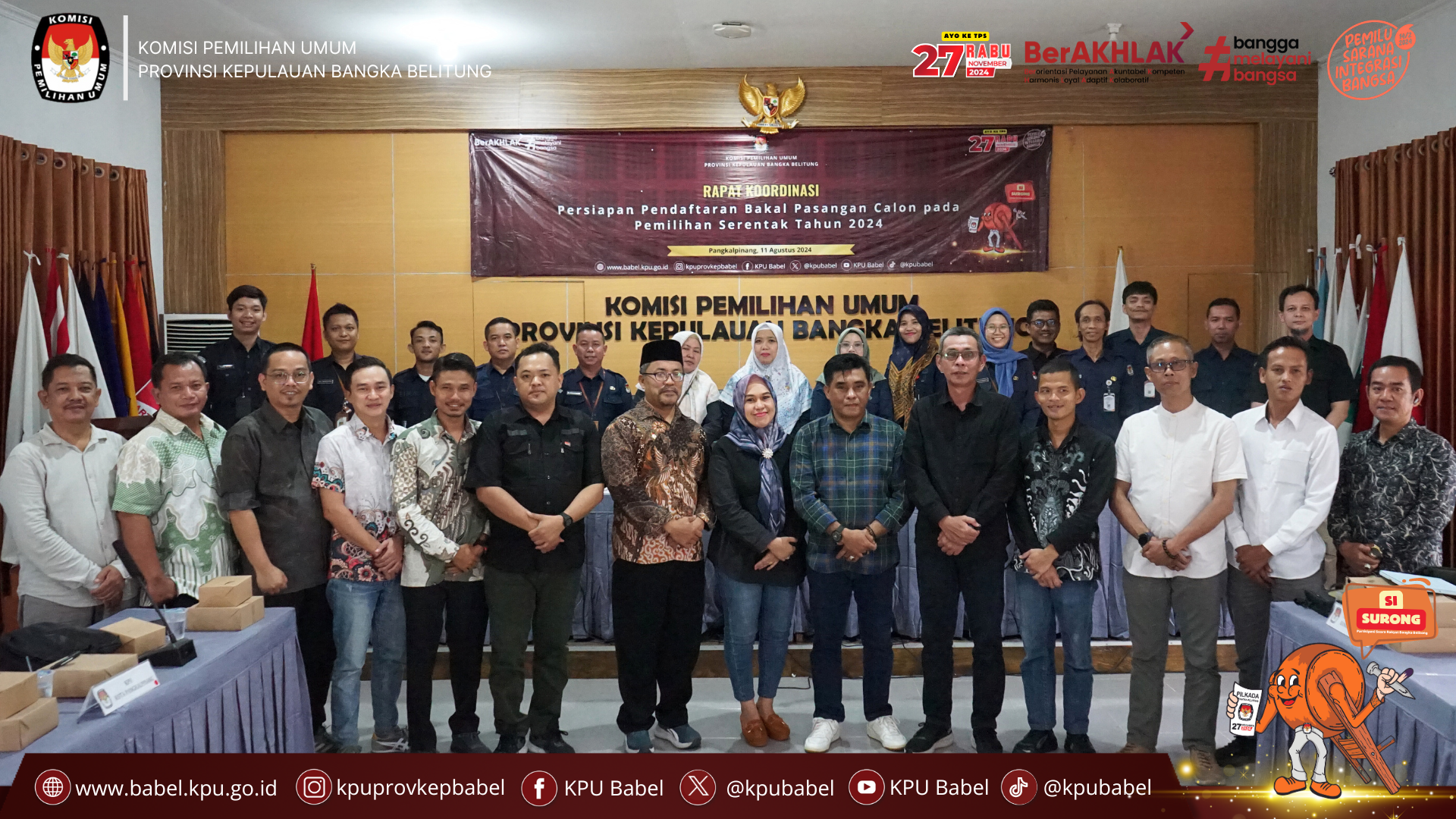#SeperadikPemilih Komisi Pemilihan Umum Provinsi Kepulauan Bangka Belitung mengadakan rapat koordinasi dengan KPU Kabupaten/Kota se-Bangka Belitung. Rapat ini dilaksanakan dalam rangka persiapan pendaftaran bakal pasangan calon pada Pemilihan Serentak Tahun 2024. (11/8)