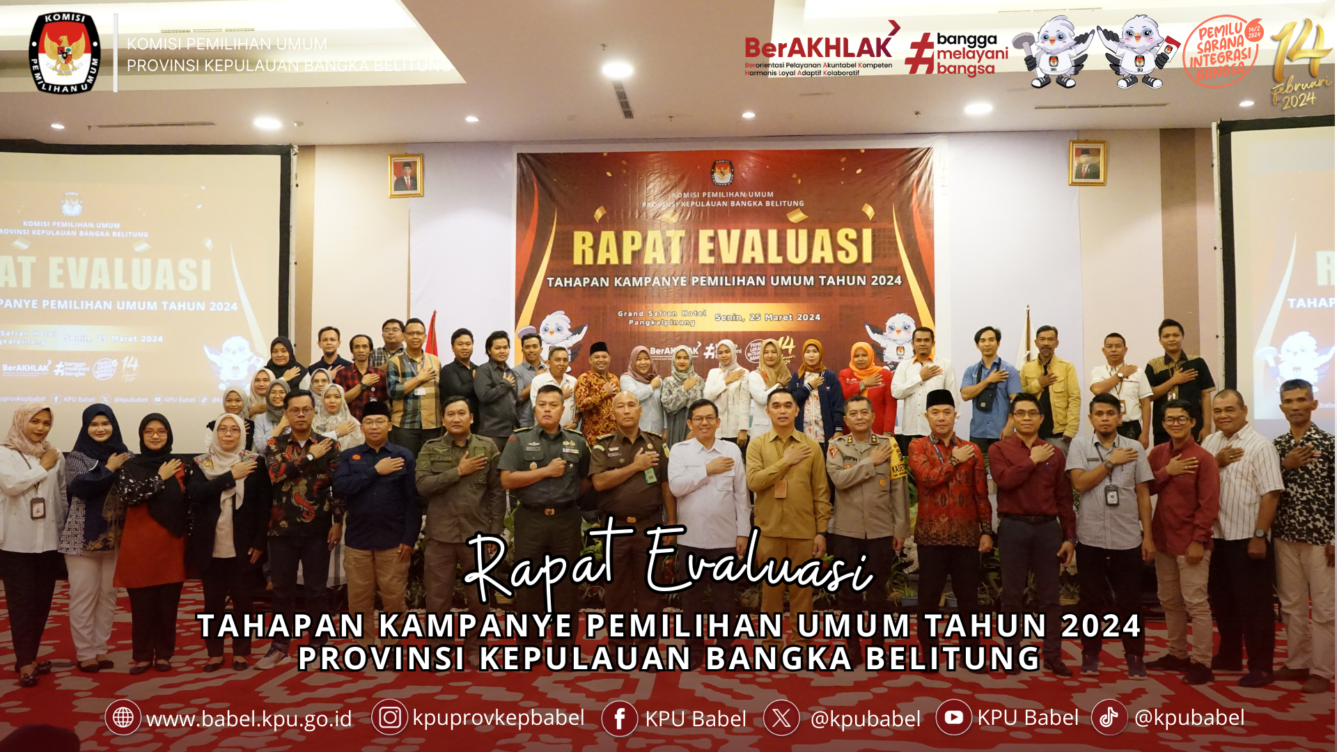 #SeperadikPemilih, Komisi Pemilihan Umum Provinsi Kepulauan Bangka Belitung menyelenggarakan Rapat Evaluasi Tahapan Kampanye pada Pemilu Tahun 2024 Tahun 2024 bertempat di grand safran hotel pangkalpinang. (25/3)