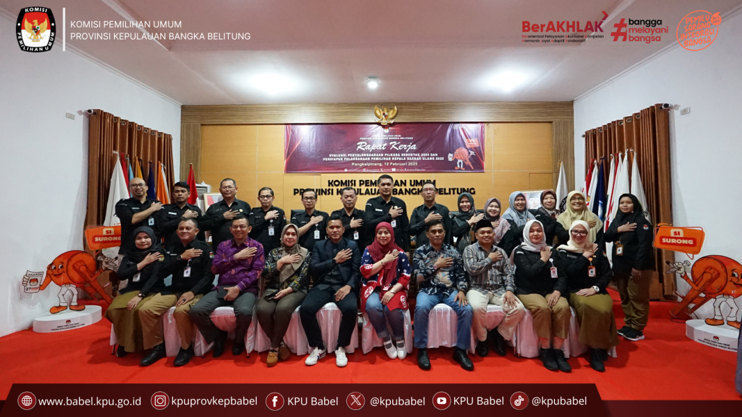 #SeperadikPemilih Komisi Pemilihan Umum Provinsi Kepulauan Bangka Belitung menggelar Rapat Kerja Evaluasi Penyelenggaraan Pilkada Serentak Tahun 2024 dan Persiapan Pemilihan Kepala Daerah Ulang Tahun 2025. Kegiatan ini dihadiri oleh anggota KPU RI Betty Epsilon Idroos serta jajaran KPU Provinsi dan KPU Kabupaten/Kota di Kepulauan Bangka Belitung.