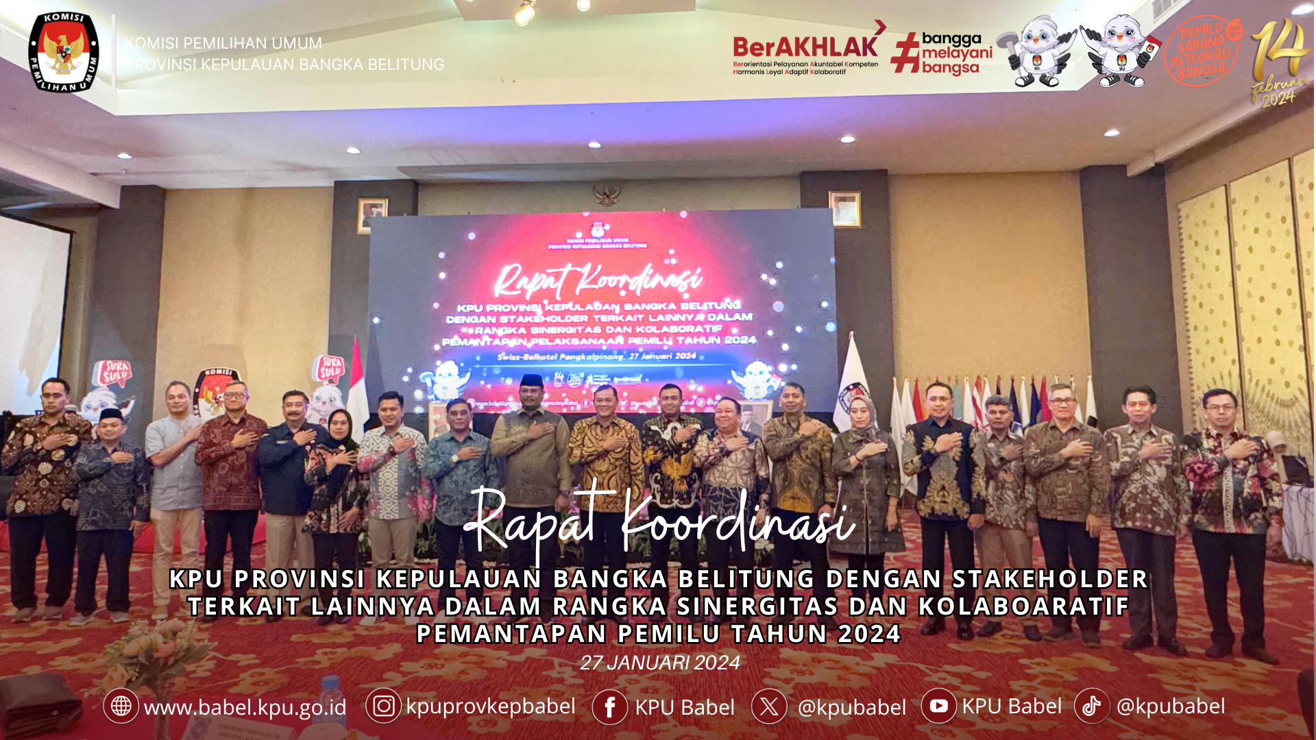 #SeperadikPemilih, untuk memantapkan pelaksanaan Pemilu Tahun 2024, KPU Provinsi Kepulauan Bangka Belitung menggelar acara Rapat Koordinasi dengan Stakeholder terkait lainnya dalam rangka sinergitas dan kolaboratif, di Swisbell Hotel Pangkalpinang, Sabtu (27/01/2024)