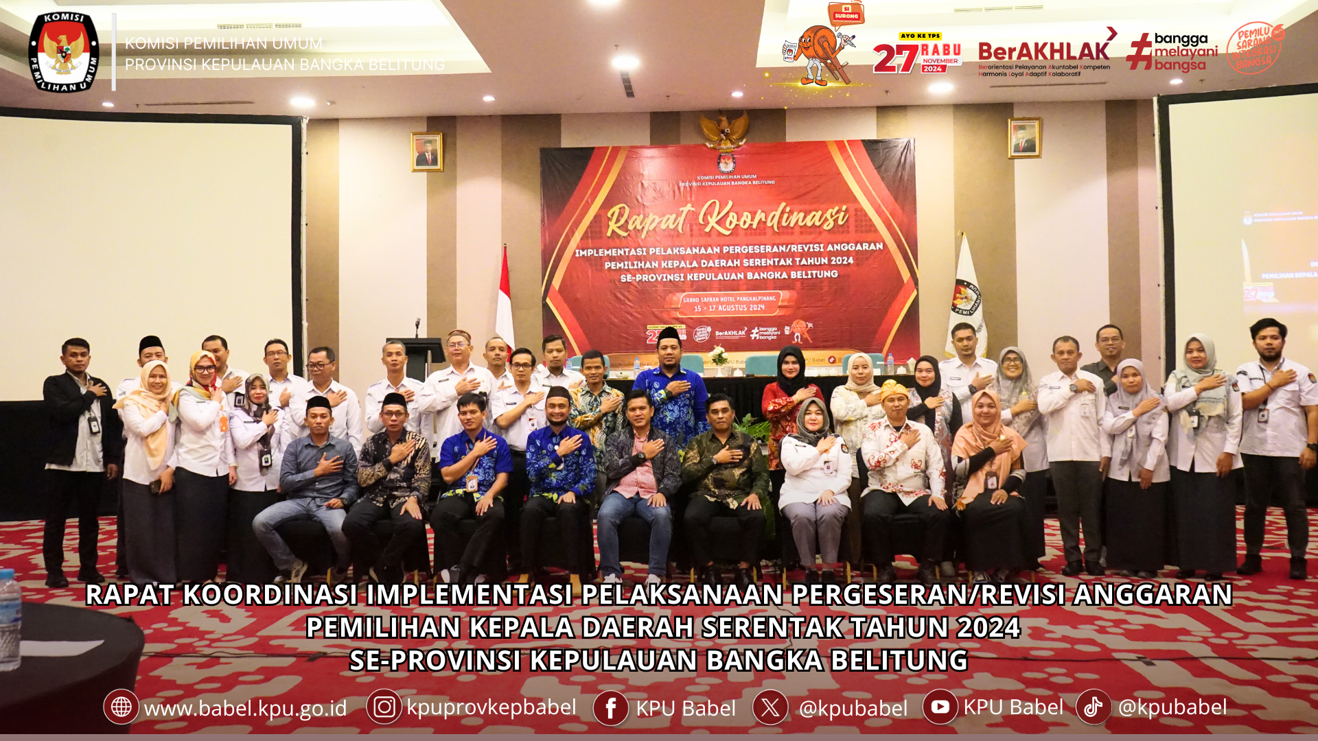 Ketua KPU Provinsi Kepulauan Bangka Belitung menutup rapat dengan menekankan pentingnya koordinasi yang baik antar-KPU kabupaten/kota. “Kesuksesan Pilkada serentak 2024 di Kepulauan Bangka Belitung sangat bergantung pada sinergi kita semua dalam mengelola anggaran dan memastikan setiap tahapan terlaksana dengan baik,” pungkasnya.