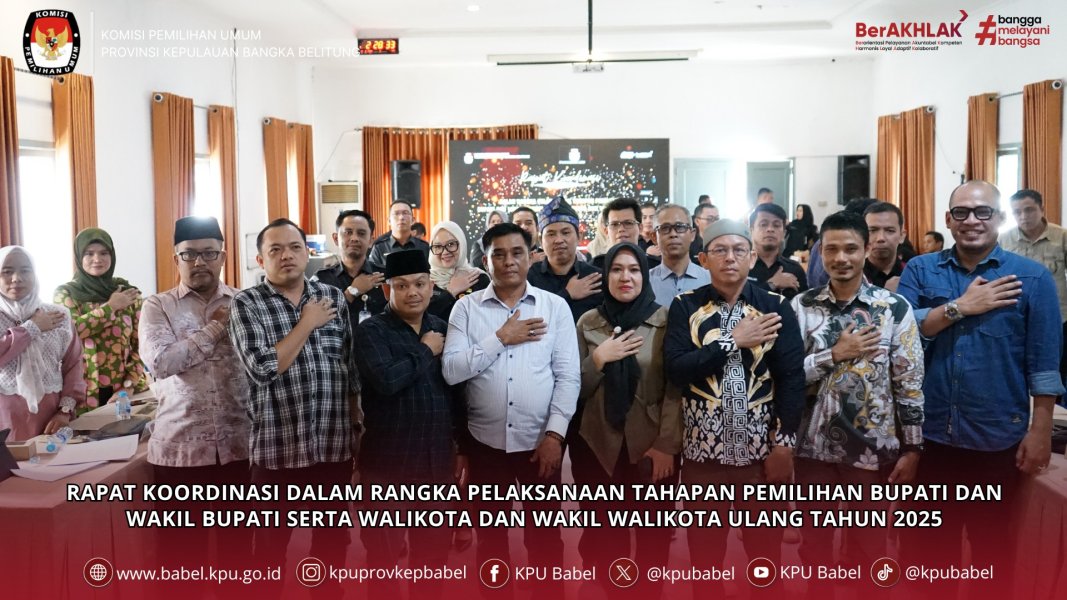 #SeperadikPemilih Komisi Pemilihan Umum Provinsi Kepulauan Bangka Belitung menggelar rapat koordinasi bersama KPU Kabupaten Bangka dan KPU Kota Pangkalpinang dalam rangka persiapan dan pelaksanaan tahapan Pemilihan Ulang Bupati dan Wakil Bupati Kabupaten Bangka serta Walikota dan Wakil Walikota Pangkalpinang Tahun 2025. (11/6)