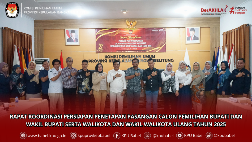 #SeperadikPemilih KPU Provinsi Kepulauan Bangka Belitung melaksanakan Rapat Koordinasi Persiapan Penetapan Pasangan Calon dalam Pemilihan Ulang Bupati dan Wakil Bupati Bangka serta Walikota dan Wakil Walikota Pangkalpinang Tahun 2025. Kegiatan ini dilaksanakan sebagai bagian dari tahapan krusial dalam memastikan pelaksanaan Pilkada ulang berjalan sesuai regulasi dan prinsip demokrasi. (20/7)