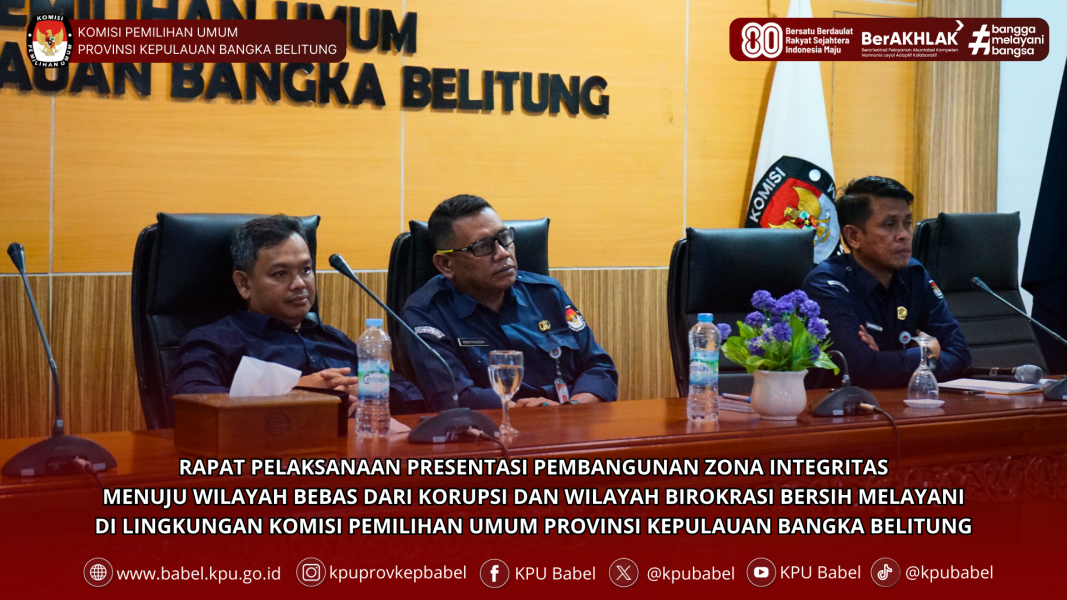 #SeperadikPemilih KPU Provinsi Kepulauan Bangka Belitung menggelar Rapat Pelaksanaan Presentasi Pembangunan Zona Integritas Menuju Wilayah Bebas dari Korupsi (WBK) dan Wilayah Birokrasi Bersih Melayani (WBBM), bertempat di Ruang Rapat KPU Babel. (12/8)