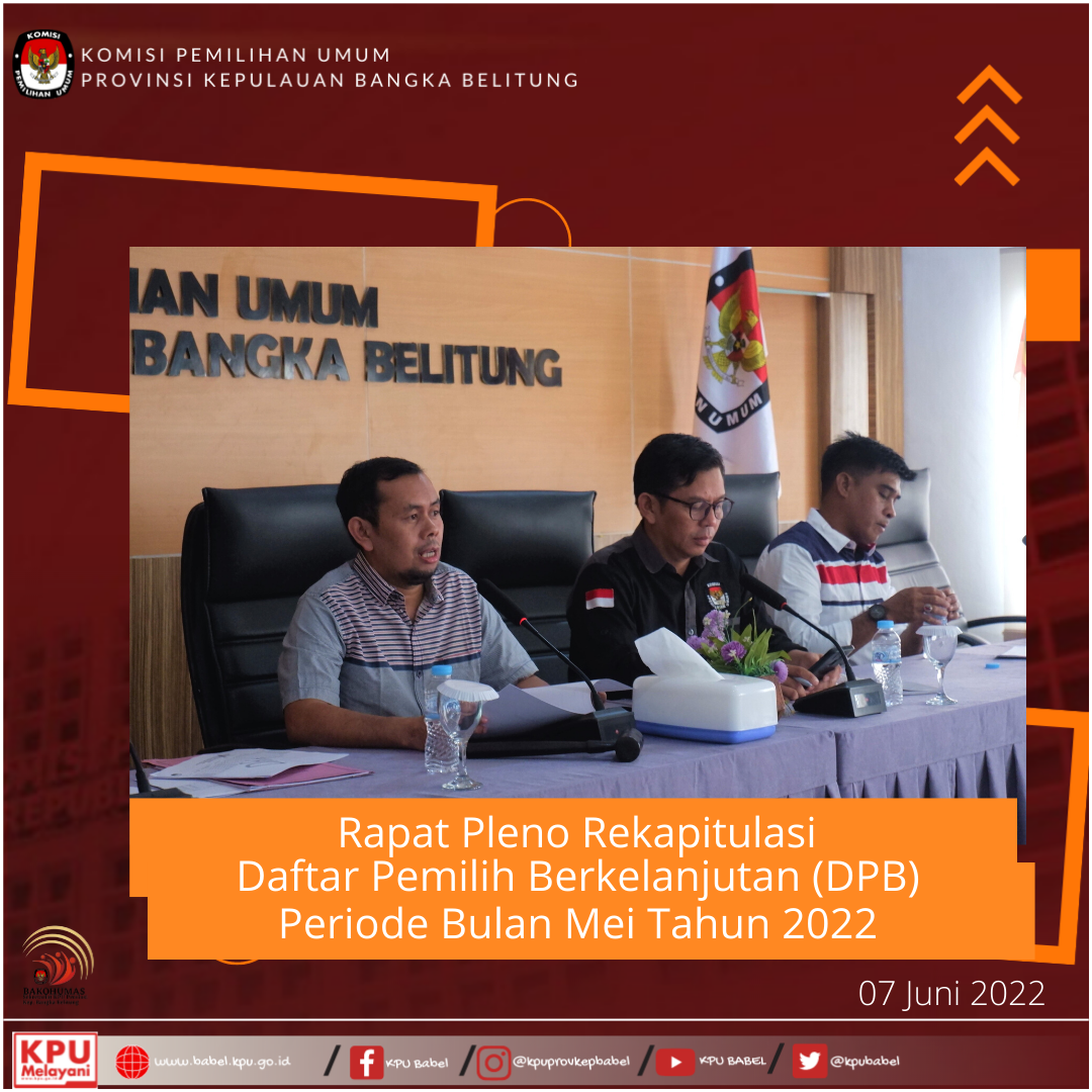 Dalam Rapat Pleno dibahas mengenai pergerakan data dalam Daftar Pemilih Berkelanjutan bulan Mei 2022. Adapun terdapat penambahan jumlah pemilih sebanyak 455 pemilih serta pengurangan jumlah pemilih atau tidak memenuhi syarat (TMS) sebanyak 260 pemilih. Adanya penambahan dan pengurangan jumlah pemilih tersebut menyebabkan jumlah total pemilih pada PDPB bulan Mei Tahun 2022 menjadi 971.104 pemilih.
