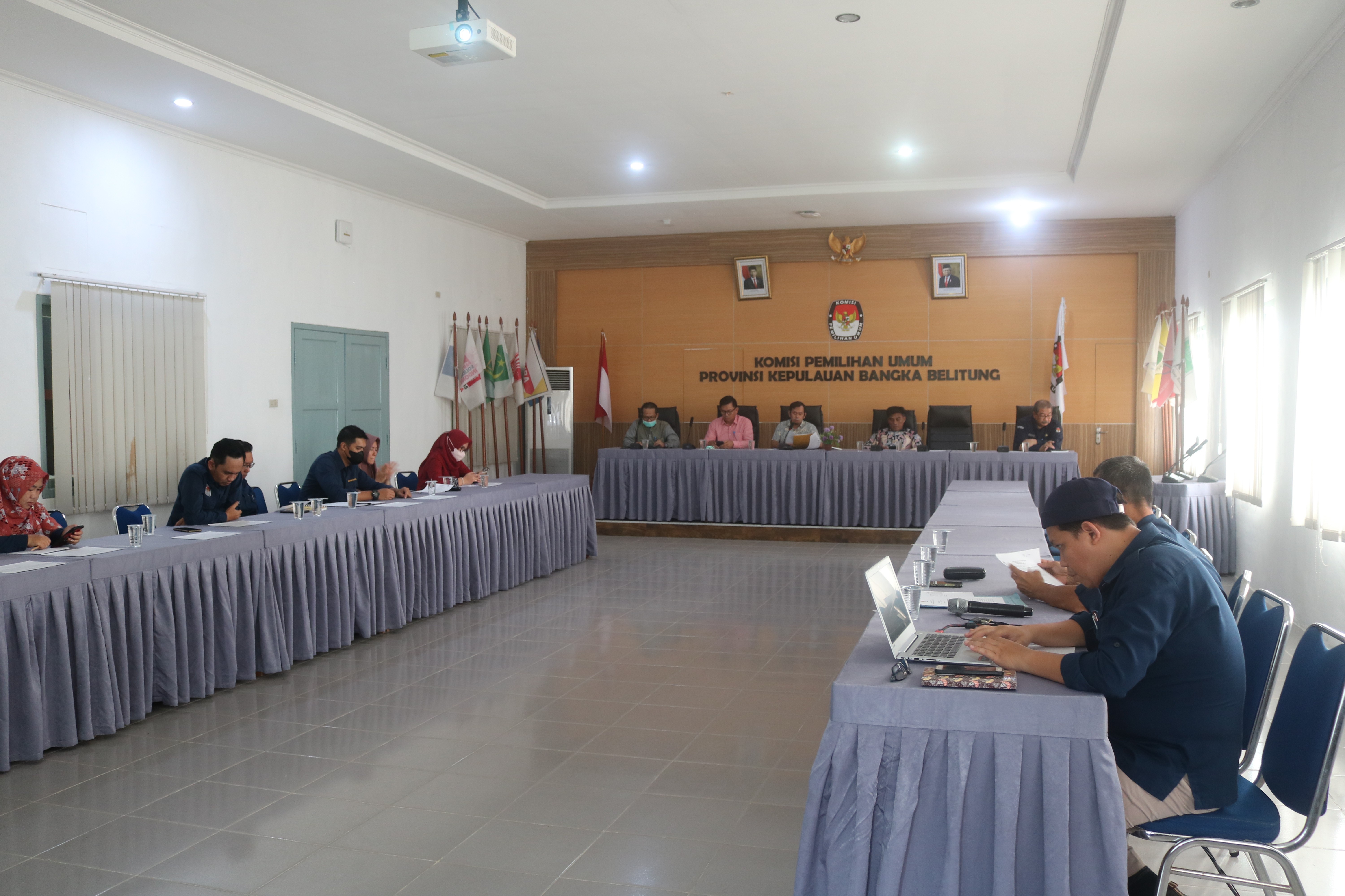 Pangkalpinang, babel.kpu.go.id - KPU Provinsi Kepulauan Bangka Belitung melaksanakan rapat Penetapan Daftar Pemilih Berkelanjutan (DPB) bulan April tahun 2022 yang digelar di ruang rapat kantor KPU Babel. Kegiatan Rapat tersebut dihadiri oleh Ketua KPU Babel, Davitri, beserta anggota, Sekretaris KPU Babel, Kabag & Kasubbag KPU Babel.