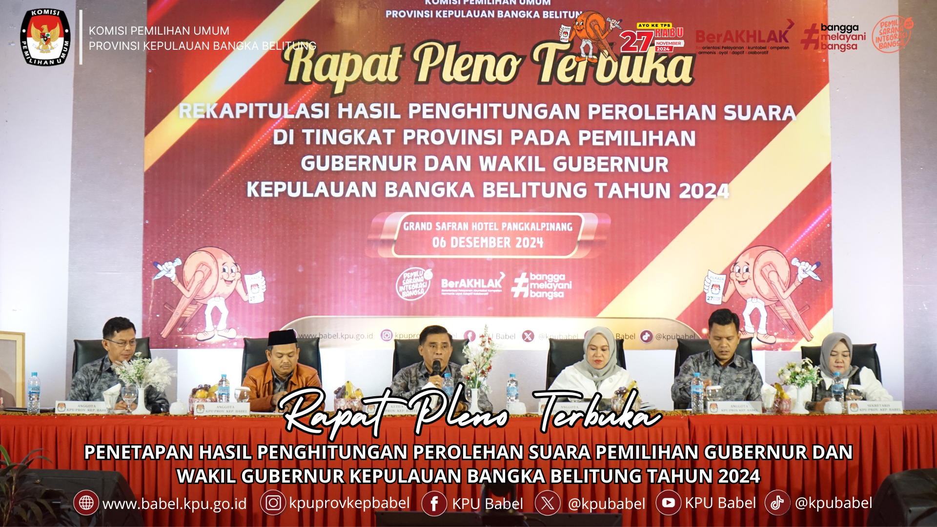 RAPAT PLENO TERBUKA PENETAPAN HASIL PEROLEHAN SUARA PILGUB BABEL 2024