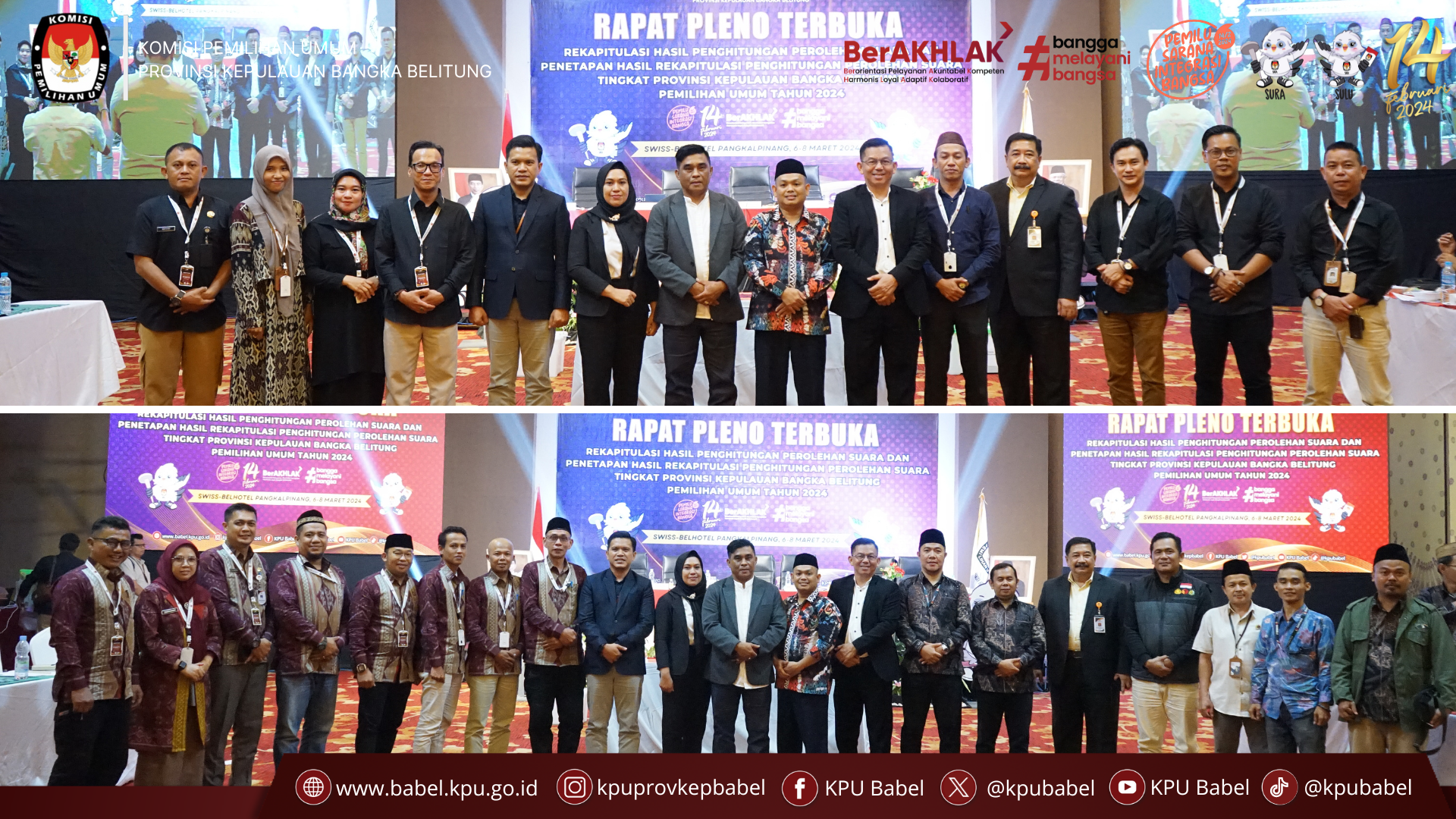 #SeperadikPemilih, KPU Provinsi Kepulauan Bangka Belitung melaksanakan Rapat Pleno Terbuka Rekapitulasi Hasil Penghitungan Perolehan Suara dan Penetapan Hasil Pemilu Serentak tahun 2024 tingkat Provinsi Kepulauan Bangka Belitung hari pertama bertempat di Swiss-Belhotel Pangkalpinang. Rabu (6/3/2024).