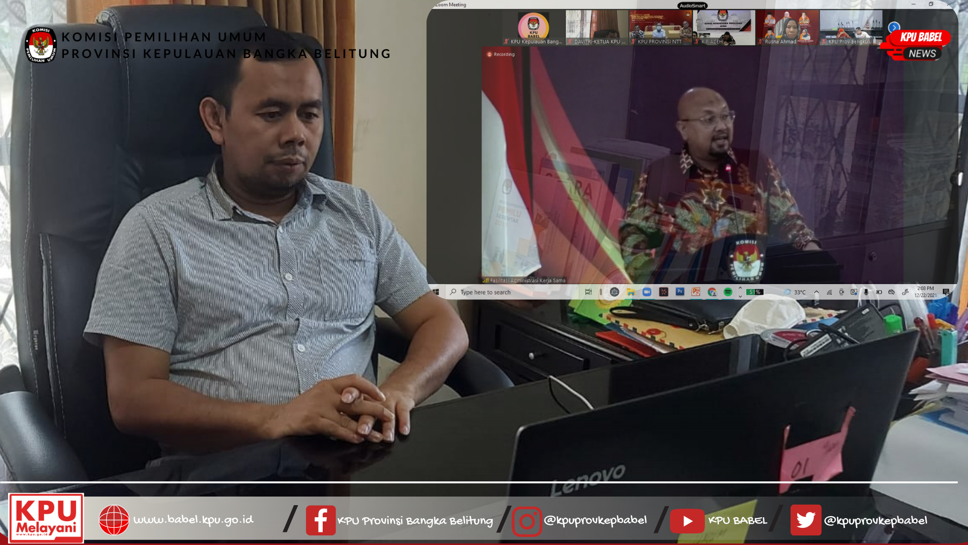 serta Penyerahan Sertifikasi ISO 27001:2013 yang diselenggarakan KPU RI secara daring via zoom dan live streaming di kanal youtube KPU RI. (Rabu, 22\12\2021)