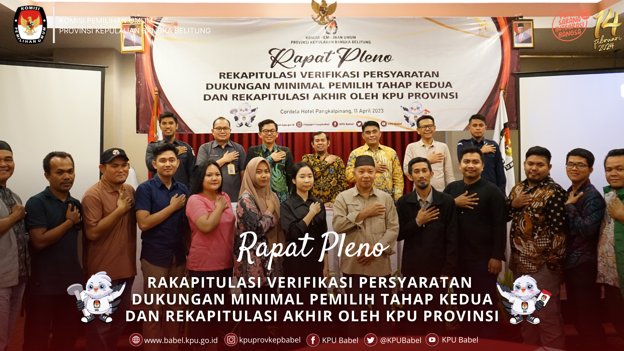 pangkalpinang, babel.kpu.go.id - #SeperadikPemilih KPU Provinsi Kepulauan Bangka Belitung menggelar Rapat Pleno Rekapitulasi Verifikasi Dukungan Minimal Pemilih Tahap Kedua dan Rekapitulasi Akhir Oleh KPU Provinsi. (11/4)