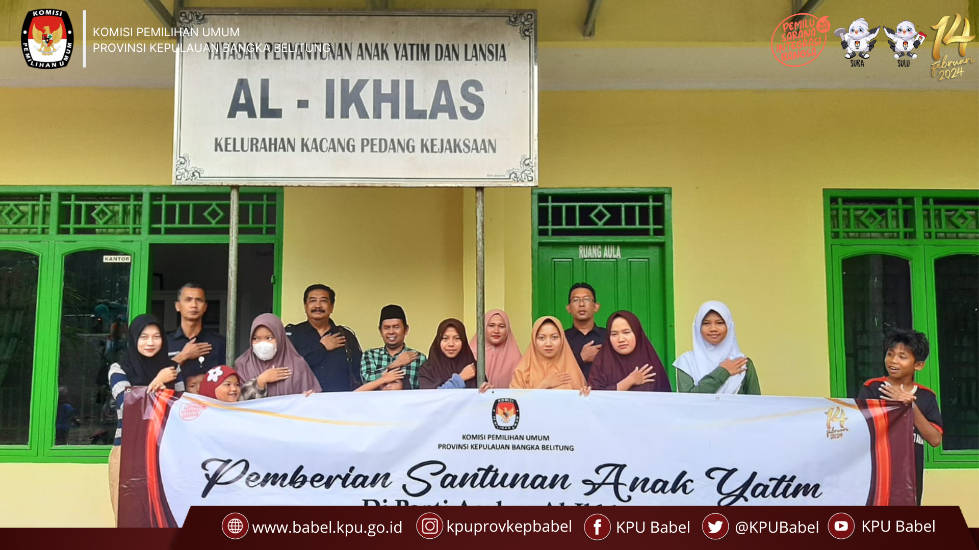 #SeperadikPemilih Dalam rangka mempererat tali silaturahmi dan untuk meningkatkan solidaritas antar sesama di Bulan Ramadhan penuh berkah, KPU Provinsi Kepulauan Bangka Belitung laksanakan kegiatan pemberian Santunan Anak Yatim di Panti Asuhan Al-Ikhlas Kacang Pedang Pangkalpinang. (12/4)