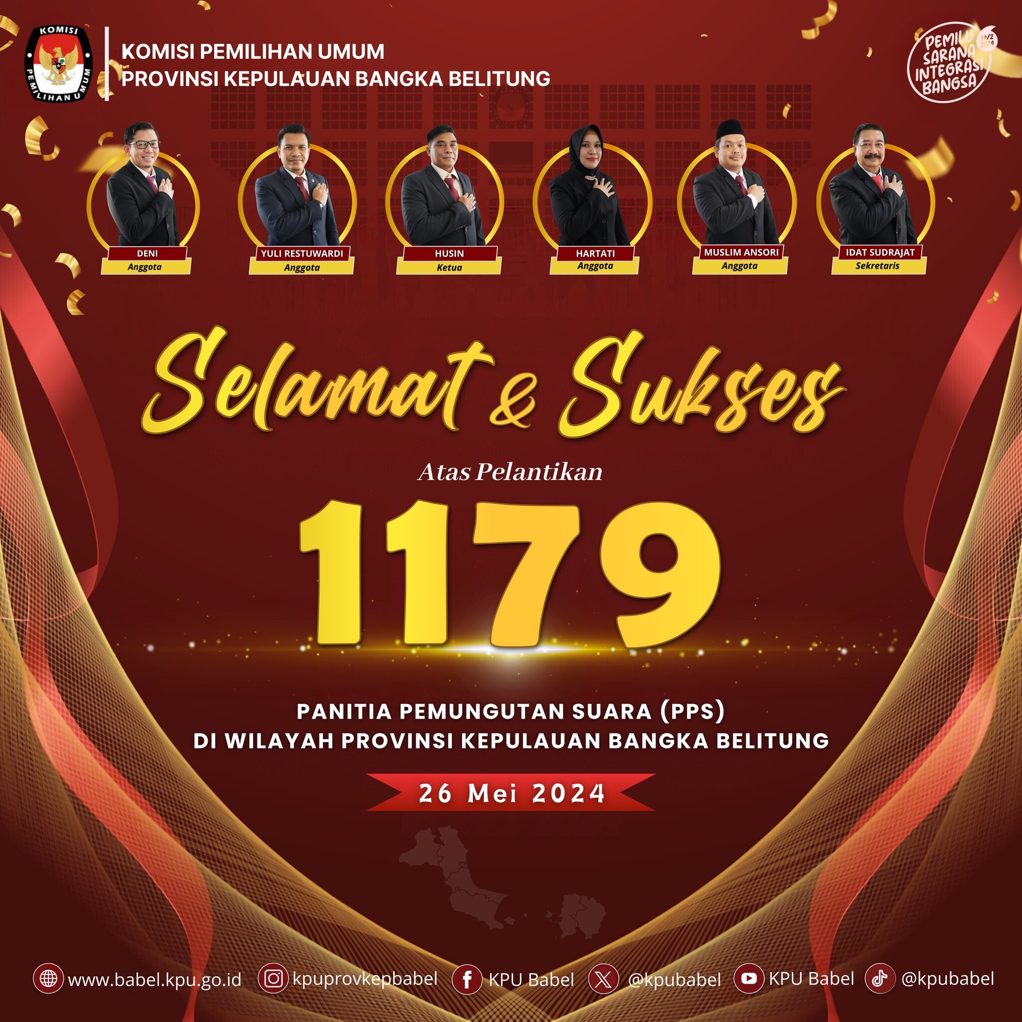 #SeperadikPemilih, Komisi Pemilihan Umum (KPU) Provinsi Kepulauan Bangka Belitung mengucapkan selamat dan sukses atas dilantiknya 1.179 Anggota PPS pada 393 Kelurahan/Desa 7 Kabupaten/Kota se-Bangka Belitung untuk Pemilihan Gubernur dan Wakil Gubernur, Bupati dan Wakil Bupati serta Walikota dan Wakil Walikota tahun 2024.