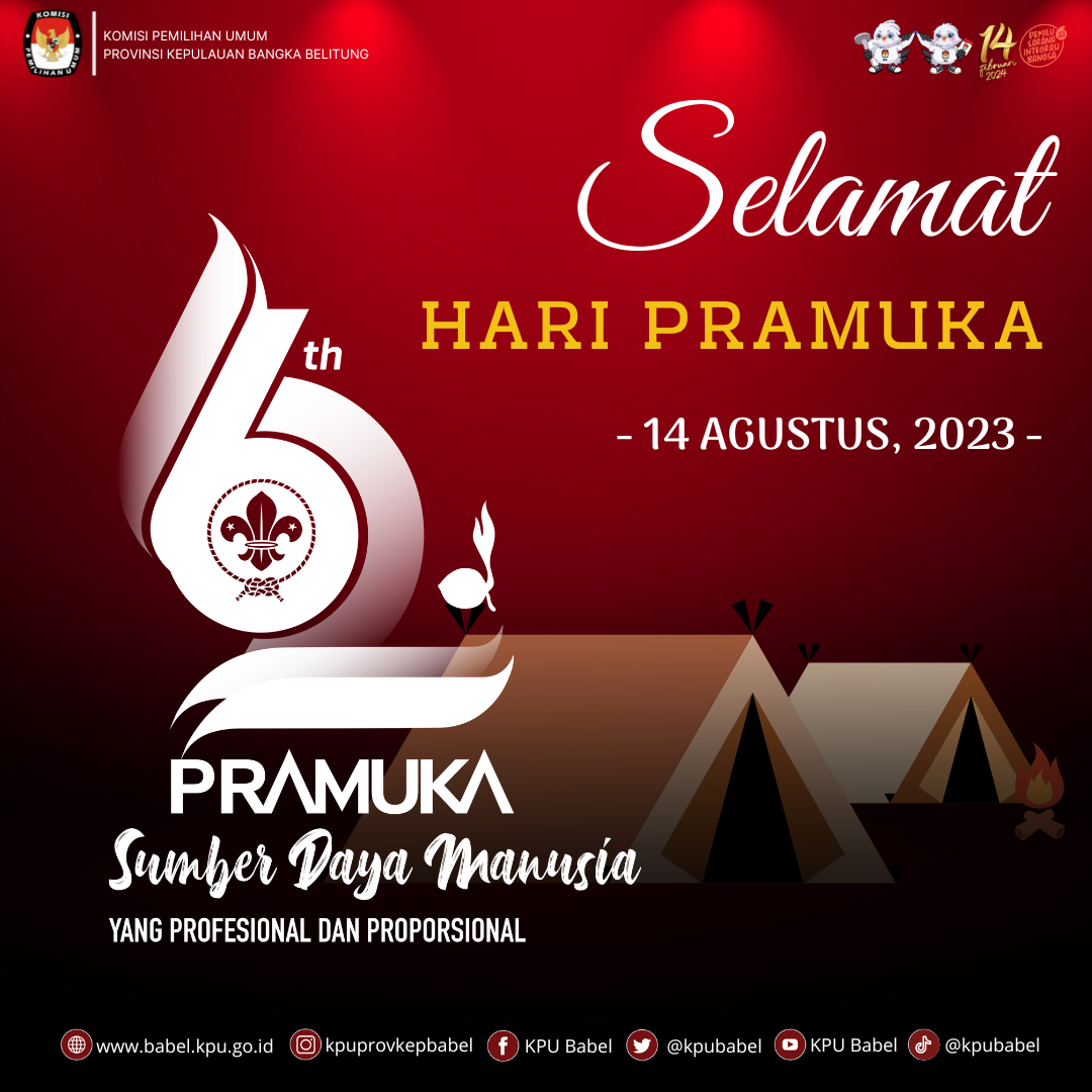 #SeperadikPemilih, Komisi Pemilihan Umum Provinsi Kepulauan Bangka Belitung mengucapkan Selamat Hari Pramuka Tahun 2023, semoga Pramuka jaya selalu dan melahirkan tunas-tunas muda yang bisa membawa bangsa kita ke arah yang lebih baik.