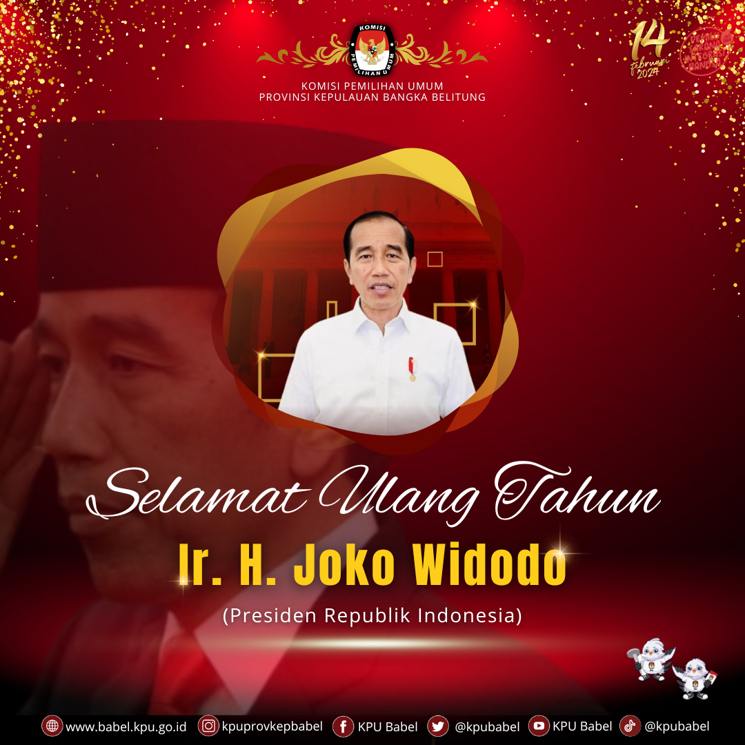 #SeperadikPemilih, segenap jajaran KPU Provinsi Kepulauan Bangka Belitung mengucapkan Selamat Hari Ulang Tahun ke- 62 Bapak Ir. H. Joko Widodo (Presiden Republik Indonesia)..