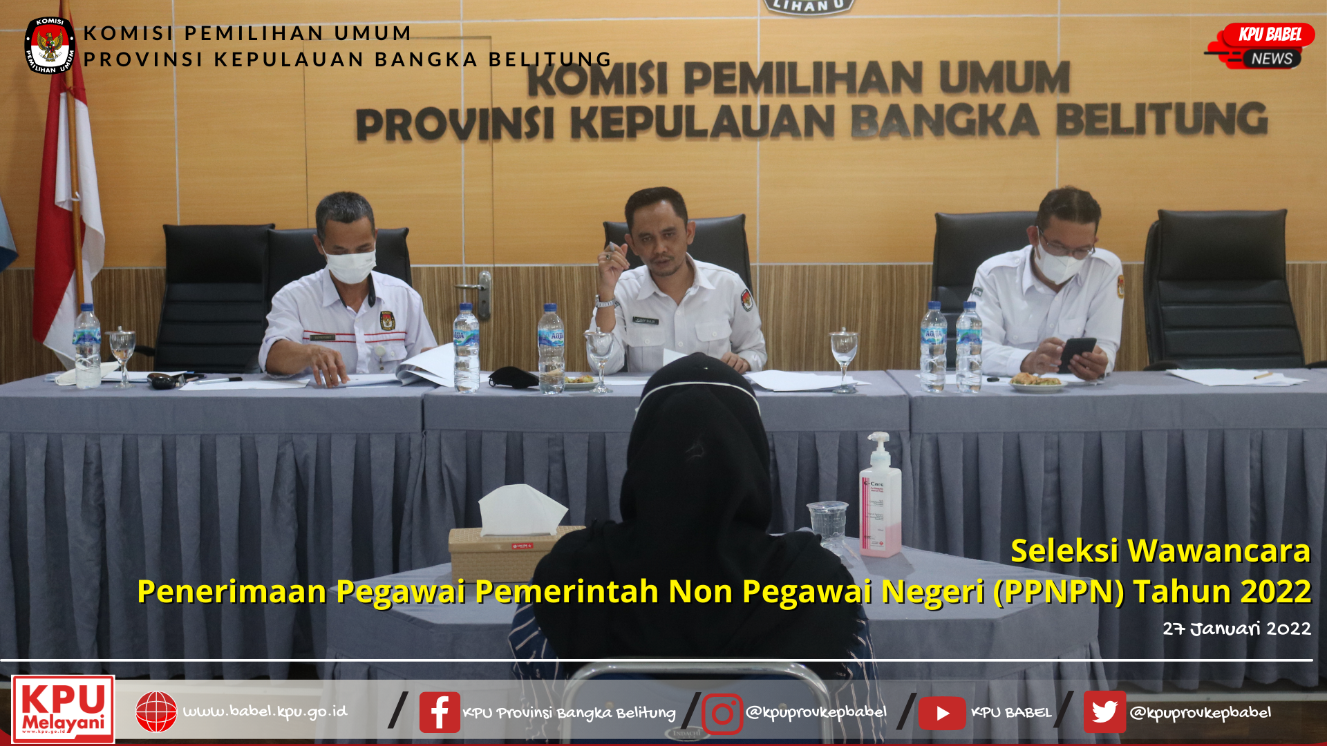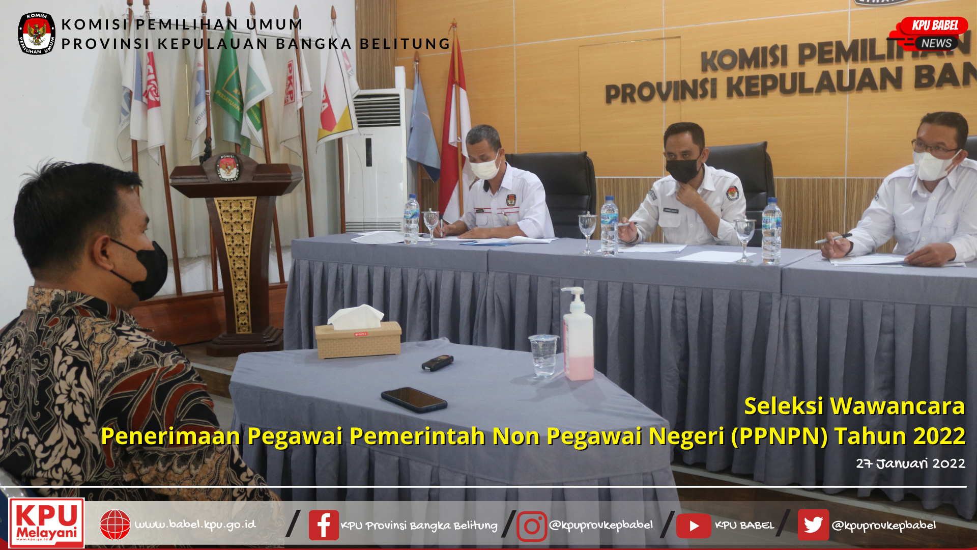 Sejumlah 46 orang peserta yang dinyatakan lolos seleksi administrasi penerimaan Pegawai Pemerintah Non Pegawai Negeri (PPNPN) Tahun 2022 mengikuti seleksi wawancara pada hari Kamis, 27 Januari 2022 di ruang rapat KPU Provinsi Kepulauan Bangka Belitung.