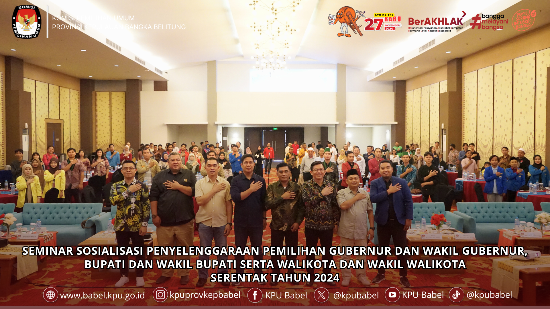 #SeperadikPemilih Dalam rangka persiapan menuju Pemilihan Gubernur dan Wakil Gubernur, Bupati dan Wakil Bupati, serta Walikota dan Wakil Walikota yang akan diselenggarakan secara serentak pada 27 November 2024, Komisi Pemilihan Umum Provinsi Kepulauan Bangka Belitung mengadakan Seminar Sosialisasi Penyelenggaraan Pemilihan Kepala Daerah Serentak 2024.