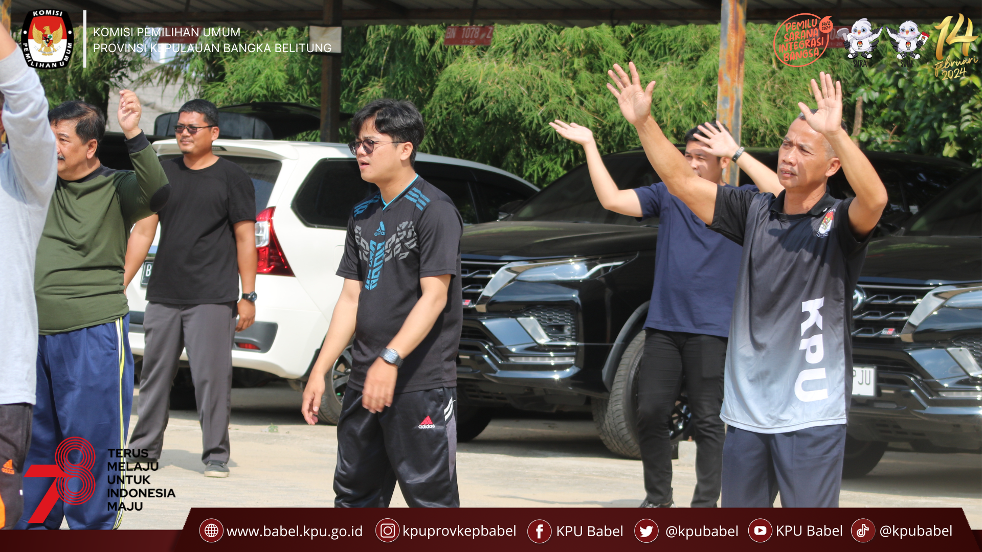#SeperadikPemilih, Demi menjaga kebugaran jasmani disela tahapan pemilu 2024 yang semakin padat, KPU Provinsi Kepulauan Bangka Belitung melaksanakan senam pagi di halaman kantor Sekretariat KPU Babel, Jumat (18/8).