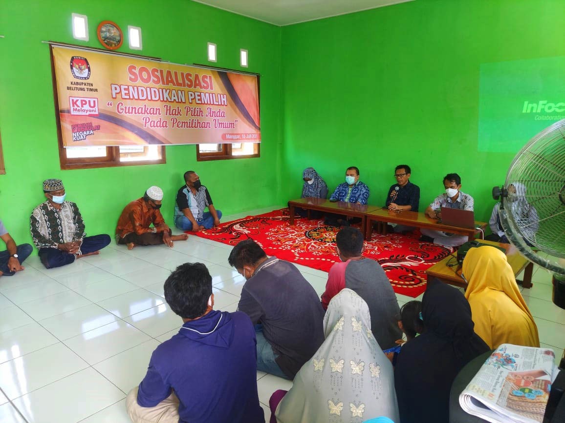 Manggar – 15/06/2021, Angka partisipasi pemilih setiap Pemilu maupun Pemilihan Kepala Daerah berbeda-beda di setiap daerah, begitupun di Kabupaten Belitung Timur. Upaya sosialisasi dan memberikan pendidikan pemilih kepada masyarakat tak henti dilakukan KPU Kabupaten Belitung Timur ke wilayah-wilayah yang angka partisipasi pemilihnya rendah. Hal ini untuk memberikan penyadaran akan pentingnya menggunakan hak pilih di Pemilu, terutama bagi kelompok masyarakat yang sulit mengakses informasi terkait pelaksanaan Pemilu maupun Pilkada.