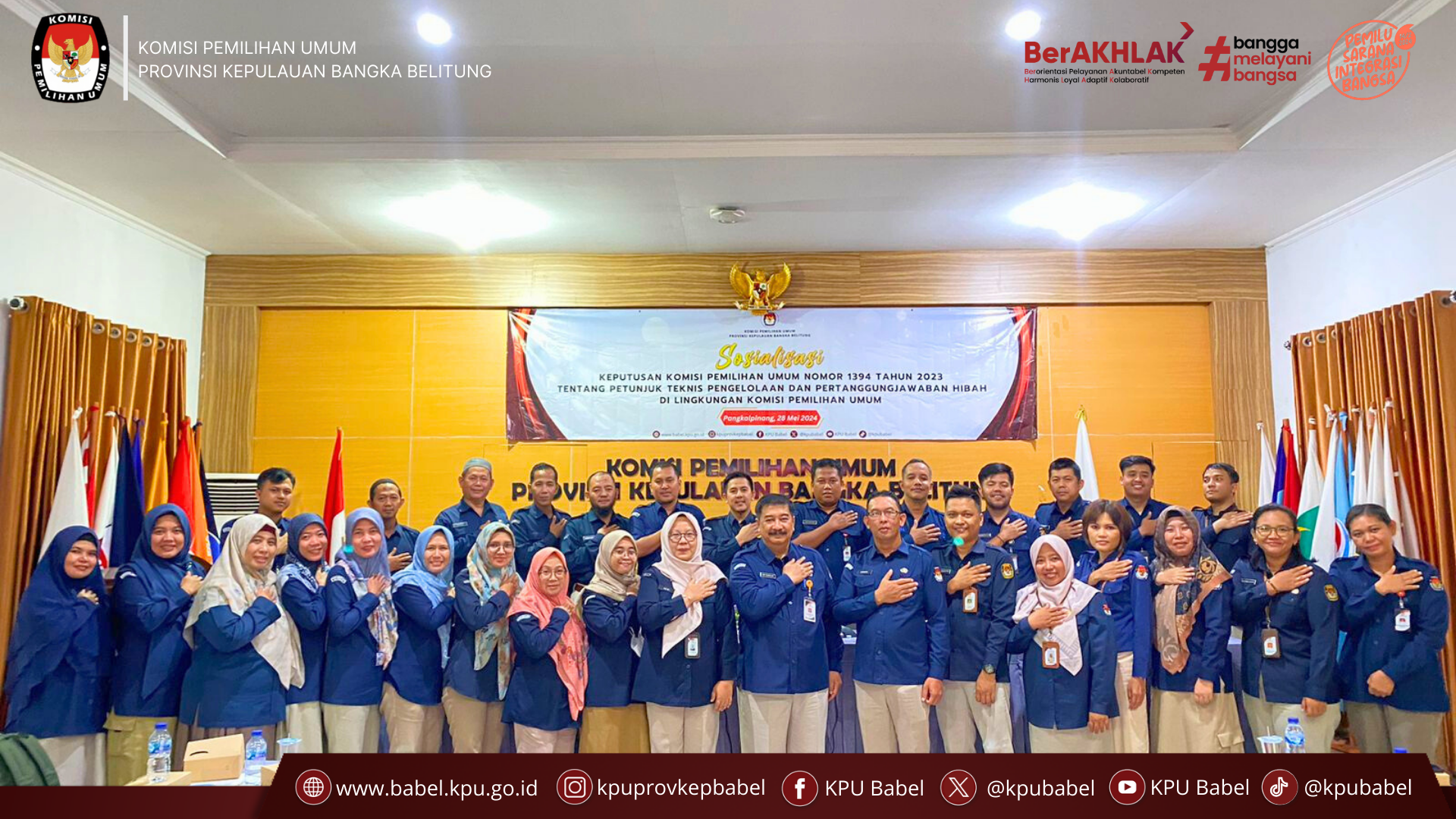 #SeperadikPemilih, Komisi Pemilihan Umum Provinsi Kepulauan Bangka Belitung menggelar sosialisasi mengenai Keputusan KPU Nomor 1394 Tahun 2023 tentang Petunjuk Teknis Pengelolaan dan Pertanggungjawaban Hibah di lingkungan KPU. Acara ini bertujuan untuk memberikan pemahaman yang lebih komprehensif kepada seluruh jajaran KPU khususnya di Lingkungan KPU se-Provinsi Kepulauan Bangka Belitung, mengenai mekanisme pengelolaan dan pelaporan hibah yang diterima oleh KPU.