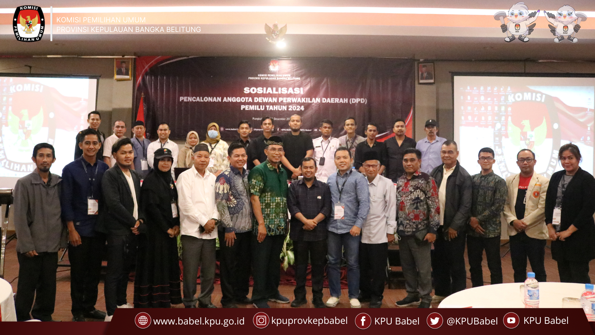 Acara digelar secara terbuka dengan dihadiri bakal calon anggota DPD 2024 atau perwakilannya, stakeholder terkait, organisasi kemasyarakatan, organisasi mahasiswa/kepemudaan sejumlah 38 orang. Sementara hadir dari KPU Babel Ketua, Davitri; Divisi Teknis Penyelenggaraan, Husin; Divisi Hukum, Deni; Kabag dan Kasubbag serta Staf Tekmas.