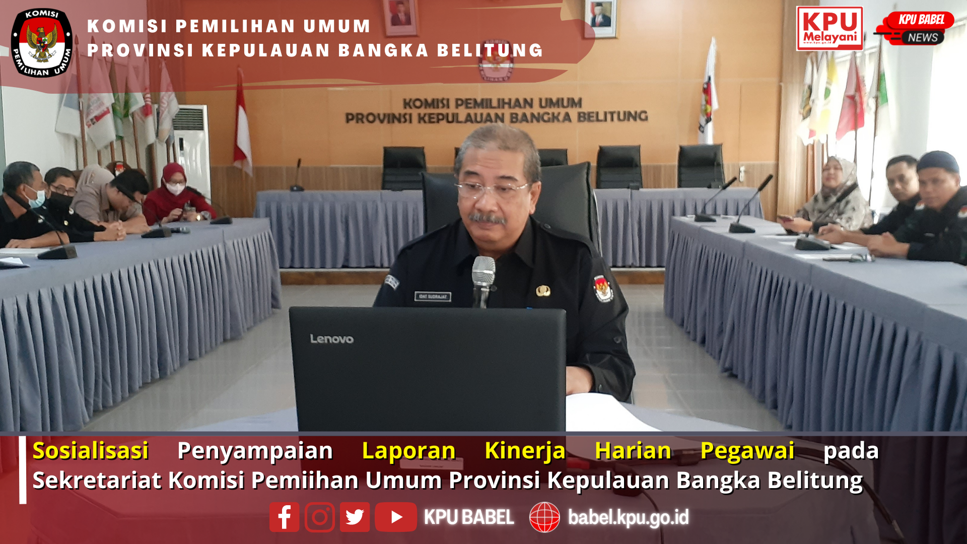 Pangkalpinang, Rabu (20-04-2022) - Sehubungan dengan diterbitkannya Keputusan Sekretaris Jenderal Komisi Pemilihan Umum Republik Indonesia Nomor 326 Tahun 2022 tentang Petunjuk Teknis Pelaksanaan Pemberian Tunjangan Kinerja Pegawai di Lingkungan Sekretariat Jenderal Komisi Pemilihan Umum yang mensyaratkan kepada semua ASN untuk membuat laporan kinerja harian sebagai acuan dalam pemberian tunjangan kinerja, maka KPU Provinsi Kepulauan Bangka Belitung perlu untuk mengadakan "Sosialisasi terkait Penyampaian Laporan Kinerja Harian Pegawai berbasis online"