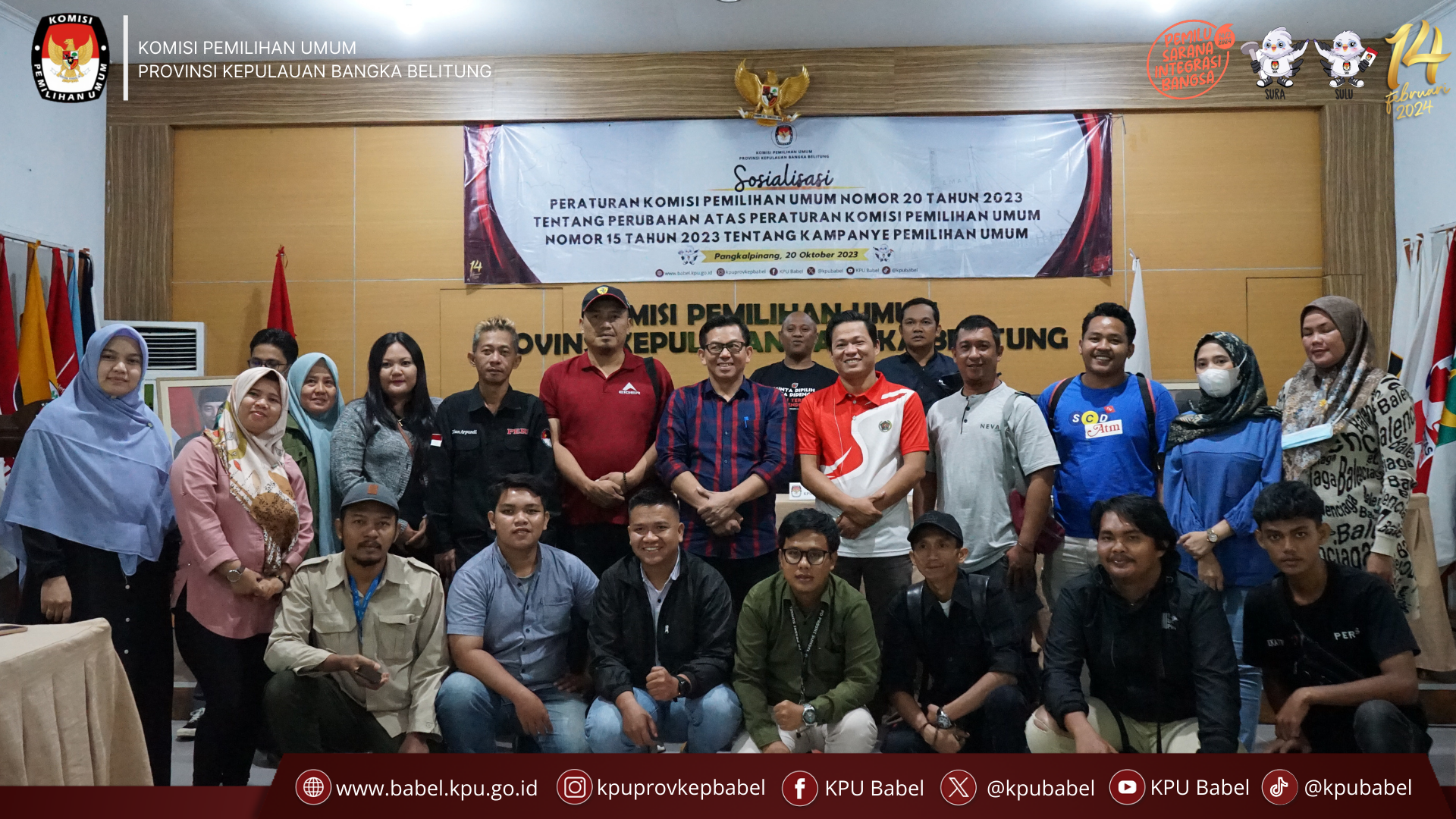 #SeperadikPemilih, Komisi Pemilihan Umum (KPU) Provinsi Kepulauan Bangka Belitung gelar Sosialisasi Peraturan KPU Nomor 20 Tahun 2023 perubahan atas Peraturan KPU Nomor 15 Tahun 2023 tentang Kampanye Pemilu Tahun 2024. Sosialisasi ini diberikan pada perwakilan media baik itu cetak, elektronik ataupun juga online yang ada di Provinsi Kepulauan Bangka Belitung. Jumat (20/10/2023).