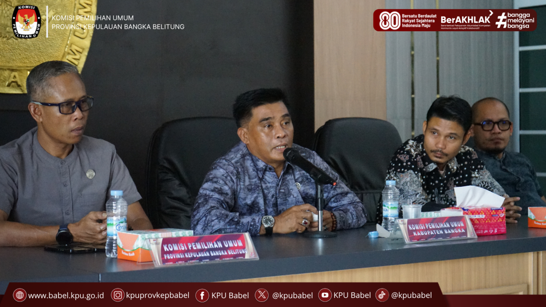 #SeperadikPemilih Ketua KPU Provinsi Kepulauan Bangka Belitung Husin bersama Kepala Bagian dan Kepala Sub bagian Teknis hadir dalam sosialisasi SK penetapan pasangan calon serta nomor urut Bupati & Wakil Bupati Bangka pada Pemilihan Ulang 2025. (8/8)