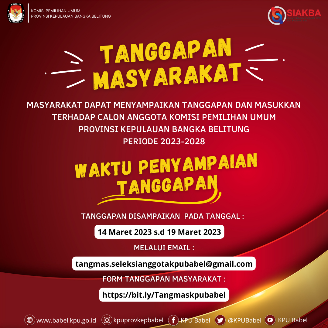 #SeperadikPemilih, KPU Provinsi Kepulauan Bangka Belitung siap menerima tanggapan dan masukan terhadap calon anggota KPU Provinsi Kepulauan Bangka Belitung Periode 2023-2028.