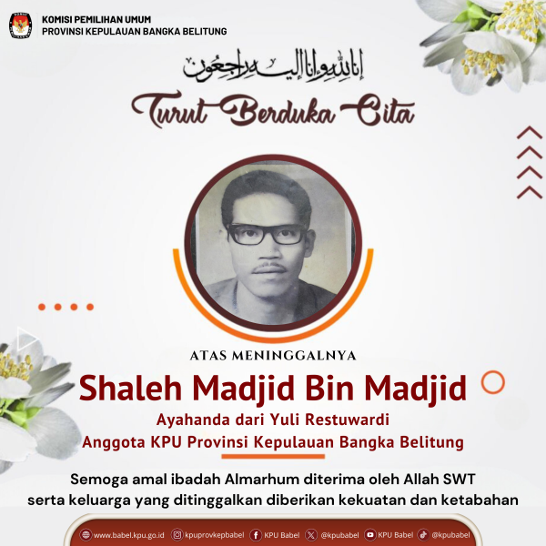 #SeperadikPemilih Komisi Pemilihan Umum Provinsi Kepulauan Bangka Belitung turut berduka cita atas Meninggalnya Solma Binti Slamet Ketua KPPS TPS 002 Desa Permis Kecamatan Simpang Rimba Kabupaten Bangka Selatan pada Pilkada Tahun 2024.