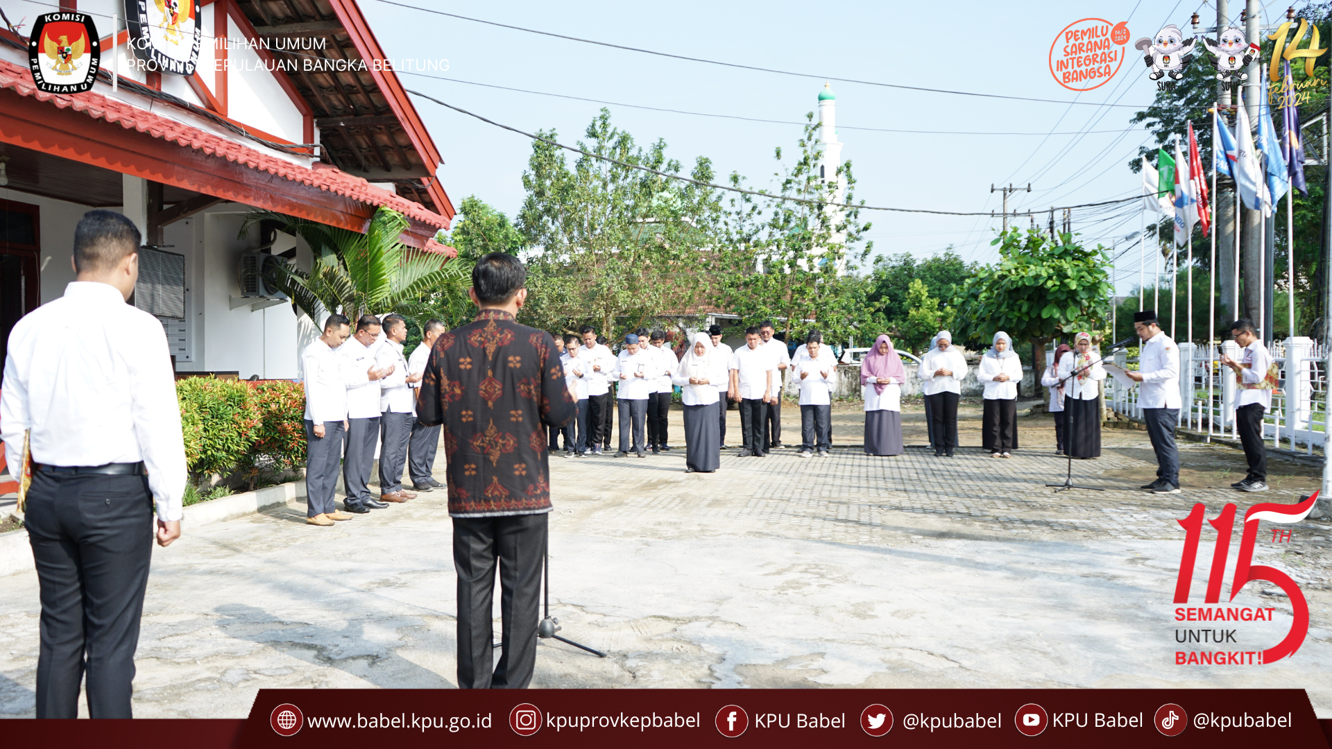 #SeperadikPemilih Bertempat di Halaman KPU Provinsi Kepulauan Bangka Belitung, KPU Babel melaksanakan Upacara untuk memperingati Hari Kebangkitan Nasional Tahun 2023, bertindak sebagai Inspektur Upacara Anggota KPU Babel Divisi Hukum Deni diikuti oleh seluruh jajaran Sekretariat KPU Babel. (22/5)